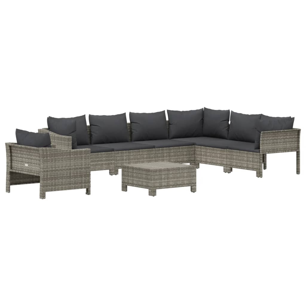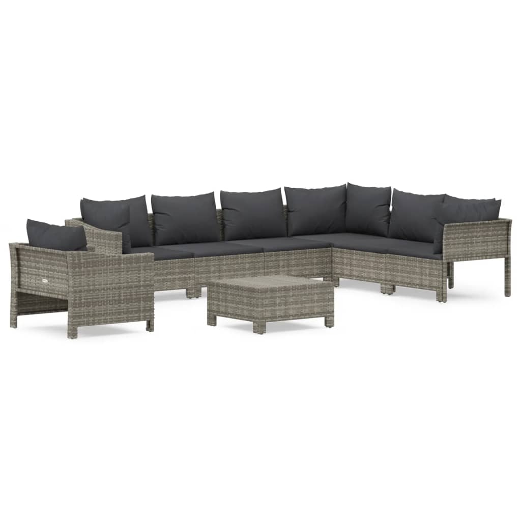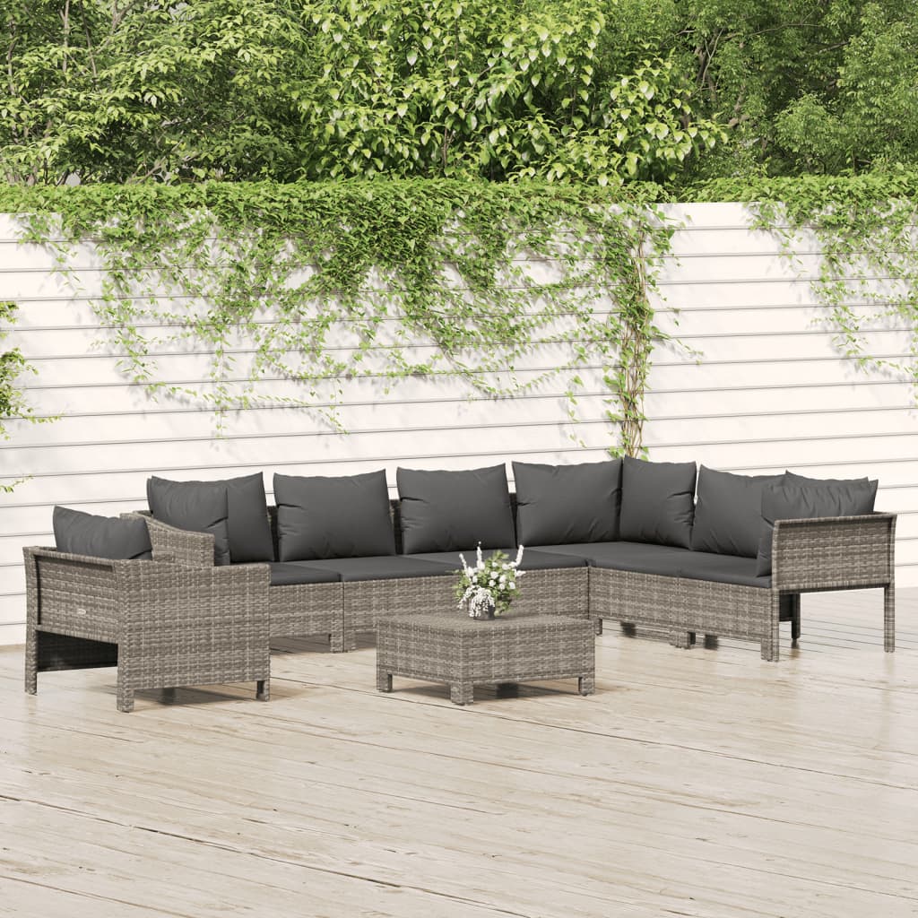 8-tlg. Garten-Lounge-Set mit Kissen Grau Poly Rattan