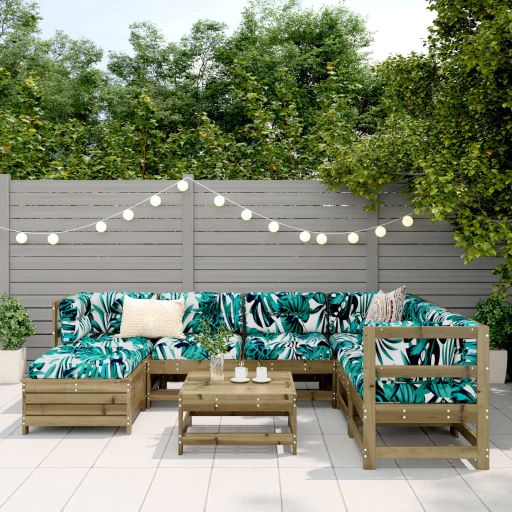 Dieses Garten-Lounge-Set aus Holz mit Latten-Design ist eine großartige Bereicherung für deinen Garten, deine Terrasse oder deinen Balkon, um eine gemütliche Zeit mit der Familie oder Freunden zu verbringen. Robustes und langlebiges Material: Massives Kiefernholz ist für seine Stärke und Haltbarkeit bekannt. Seine gerade Maserung und die charakteristischen Aststellen tragen zu seinem rustikalen Charme bei. Es wurde mit einer Konservierungslösung imprägniert und mit Autoklaven behandelt, um eine höhere Verrottungs- und Witterungsbeständigkeit zu besitzen. Gute Belüftung und Verhinderung von Ansammlungen: Das Latten-Design sorgt für eine optimale Luftzirkulation und verhindert effektiv, dass sich Wasser ansammelt, wodurch die Sitzfläche stets bequem trocken bleibt. Vielseitig einsetzbar: Der Gartenhocker lässt sich als Sitzgelegenheit oder zum Ausruhen der Füße verwenden, kann aber auch als Couchtisch für Getränke, Snacks oder Dekorationen dienen. Modulares Design: Dank des modularen Designs lassen sich die Gartenmöbel völlig flexibel und einfach umstellen, um deinen Außenbereich ganz individuell zu gestalten. Gut zu wissen:Wir empfehlen dir, deine Gartenmöbel mit einer wasserdichten Hülle zu schützen, um lange Zeit eine ansprechende Optik aufzuweisen.