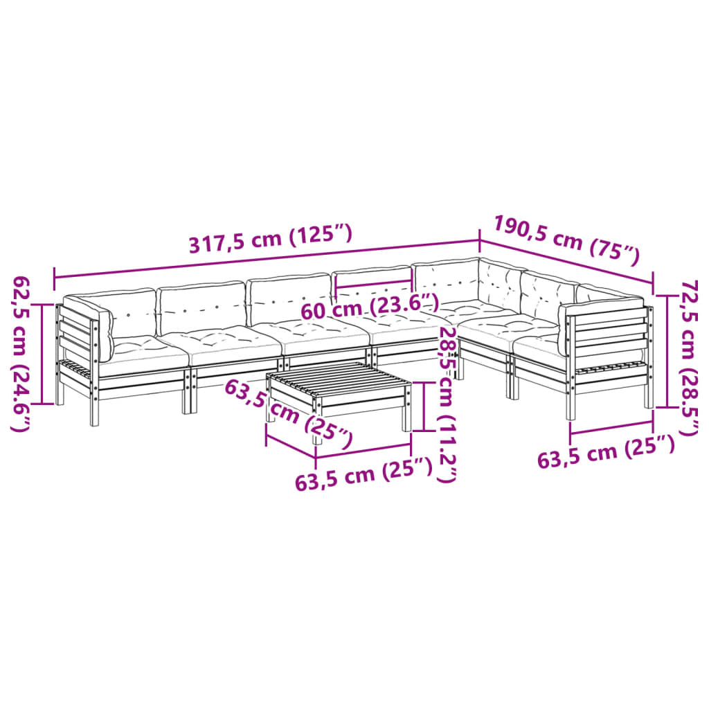 Diese Garten-Sofagarnitur ist die perfekte Ergänzung zu deinem Garten, deiner Terrasse oder deinem Innenhof. Sie bietet einen bequemen und einladenden Platz, um mit Familie und Freunden zu plaudern oder dich einfach nur zu entspannen und das Leben im Freien zu genießen. Robustes und langlebiges Material: Massives Kiefernholz ist für seine Stärke und Haltbarkeit bekannt. Seine gerade Maserung und die charakteristischen Aststellen tragen zu seinem rustikalen Charme bei. Es wurde mit einer Konservierungslösung imprägniert und mit Autoklaven behandelt, um eine höhere Verrottungs- und Witterungsbeständigkeit zu besitzen.Bequemes Sitzerlebnis: Dieser Gartensessel mit dick gepolsterten Kissen bietet ein angenehmes Sitzgefühl.Gute Belüftung und Verhinderung von Ansammlungen: Das Latten-Design sorgt für eine optimale Luftzirkulation und verhindert effektiv, dass sich Wasser ansammelt, wodurch die Sitzfläche stets bequem trocken bleibt.Modulares Design: Dank des modularen Designs lassen sich die Gartenmöbel völlig flexibel und einfach umstellen, um deinen Außenbereich ganz individuell zu gestalten. Gut zu wissen:Wir empfehlen dir, deine Gartenmöbel mit einer wasserdichten Hülle zu schützen, um lange Zeit eine ansprechende Optik aufzuweisen.