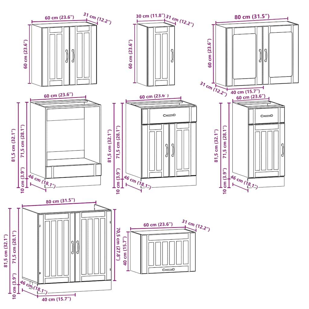 8-tlg. Küchenschrank-Set Kalmar Artisan-Eiche Holzwerkstoff