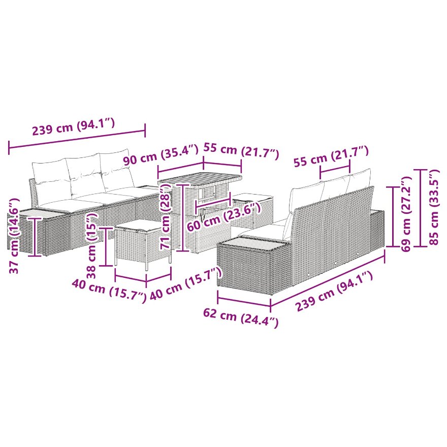 Dieses 9-teilige Garten Sofa Set von kombiniert stylisches Design und Funktionalität und ist das perfekte Highlight für Entspannung und Unterhaltung im Freien. Egal, ob Familientreffen oder ein entspannter Nachmittag auf dem Balkon, dieses Set bietet Komfort und modernen Stil. Die verstellbaren Füße halten es auf unebenen Böden stabil und machen es einfach, die Layouts zu ändern. Hergestellt aus robustem natürlichem Rattan, hält dieses Sofa Set den äußeren Bedingungen stand und behält gleichzeitig seinen stilvollen Look. Es bietet Platz für bis zu 6 Personen, perfekt für gesellige Anlässe oder entspannte Nachmittage. Die wasserdichten Kissenbezüge mit Reißverschluss erleichtern das Abnehmen und Waschen. Ein praktischer Holztisch fügt Funktionalität hinzu und ist ideal für Snacks und Getränke.