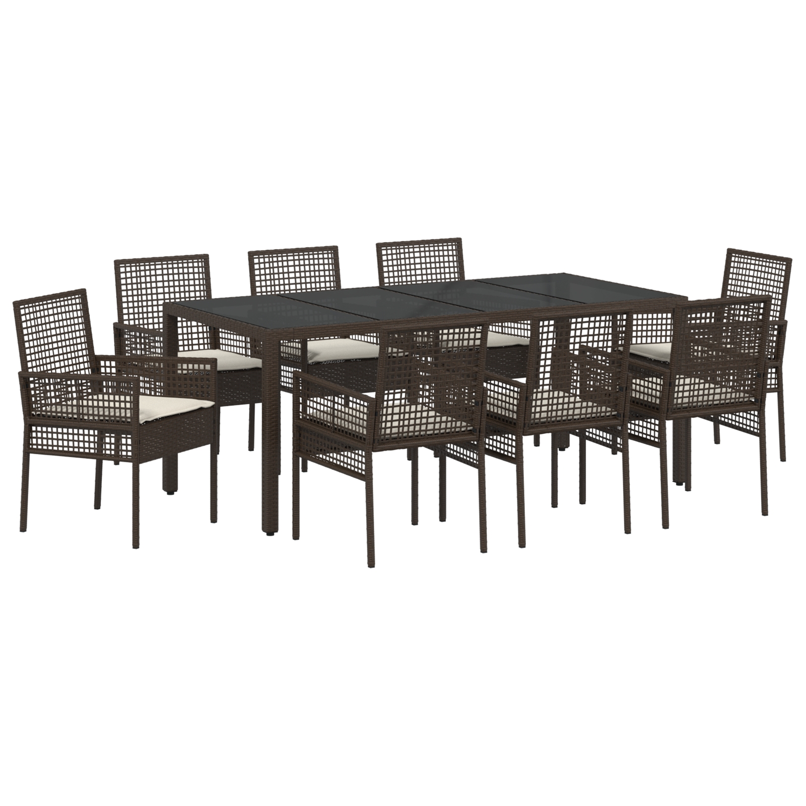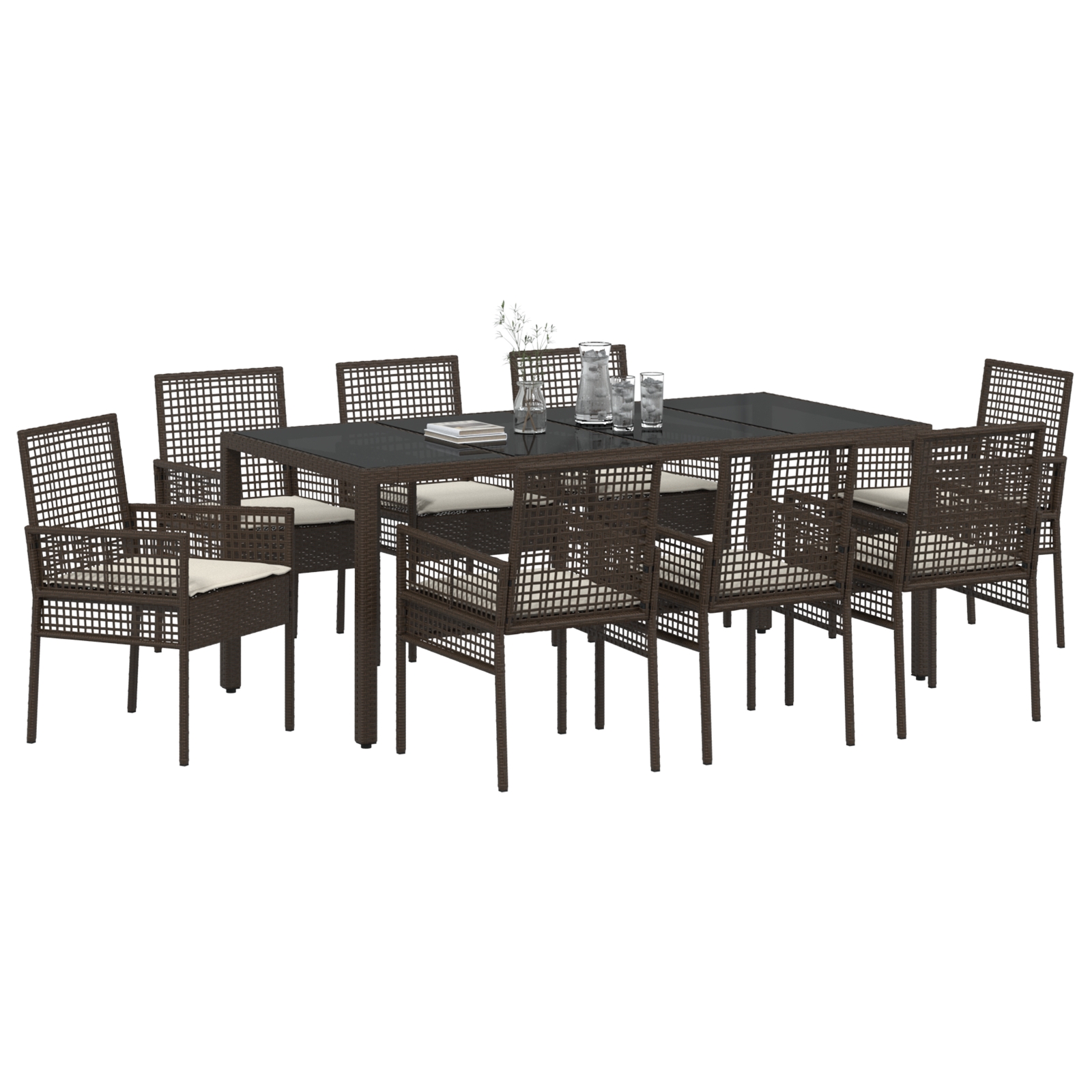 - Lieferumfang: Gartentisch mit Glasoberfläche und 8 Stühlen
