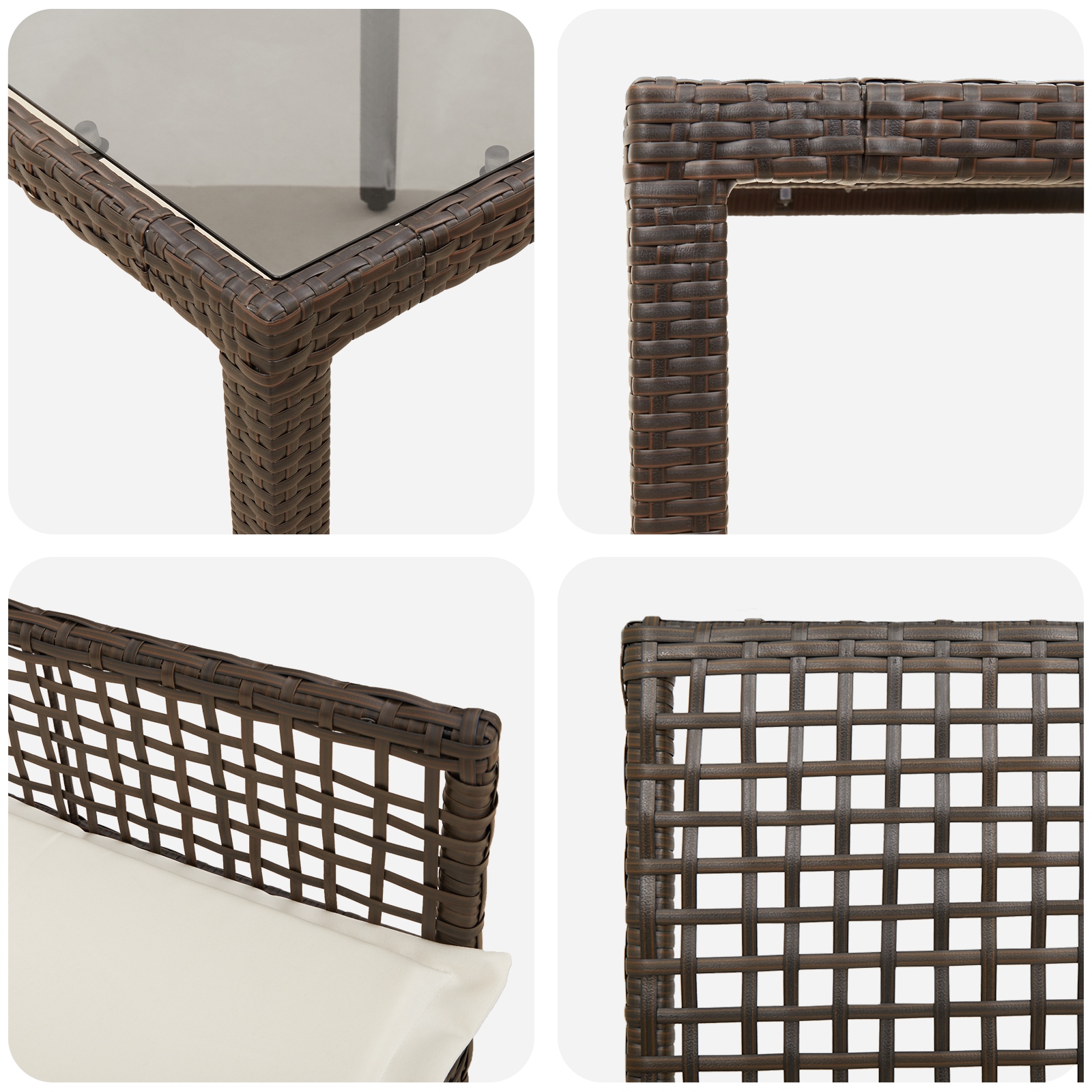 Dieser moderne Gartentisch vereint Stil und Funktionalität und wird zum zentralen Punkt jeder Outdoor-Veranstaltung. Aus robustem Poly-Rattan und mit einer eleganten Glasoberfläche ausgestattet, bringt er deinen Garten, deine Terrasse oder deinen Balkon zum Strahlen und bietet genug Platz für leckeres Essen und geselliges Beisammensein. Der Gartentisch wird aus langlebigem PE-Rattan gefertigt, bekannt für seine Robustheit und Wetterfestigkeit, damit deine Gartenmöbel über die Zeit gut aussehen. Die Glasoberfläche sorgt für einen eleganten Touch und ist super praktisch, sodass du sie einfach für Mahlzeiten sauber halten kannst. Gestaltet mit einem stabilen pulverbeschichteten Stahlrahmen bietet dieser Tisch hervorragende Stabilität, perfekt für alle Arten von Outdoor-Aktivitäten. Mit Platz für bis zu 8 Personen macht dieser Gartentisch es einfach, größere Zusammenkünfte mit Familie und Freunden zu organisieren. Das moderne Design passt in jeden Außenbereich und verwandelt deine Terrasse oder deinen Balkon in einen gemütlichen Essbereich, ideal für Grillpartys im Sommer oder Abendessen unter Sternen.
