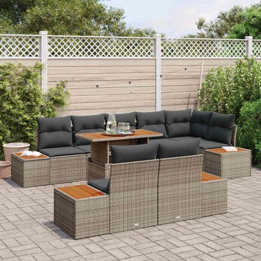 Dieses 9-teilige Garten Essset ist für alle, die Stil und praktische Dinge im Außenbereich schätzen. Mit einer eleganten grauen Poly-Rattan-Oberfläche und natürlichen Holzelementen bietet dieses Set Platz für bis zu acht Personen und bringt einen frischen, modernen Look auf deine Terrasse, deinen Balkon oder in deinen Garten – der perfekte Ort für gesellige Runden. Dieses Essset ist aus wetterfesten Materialien hergestellt, bringt Farbe und Flair in dein Leben und hält verschiedenen Wetterbedingungen stand. Die großzügige Sitzanordnung ist perfekt für Familienessen oder entspannte Abende mit Freunden und verwandelt jedes Outdoor-Event in ein tolles Erlebnis. Die modernen, klaren Linien und die schöne Kombination aus Grau und Braun machen das Set zu einem Hingucker in deinem Garten. Mit praktischem Stauraum sind alle Teile dazu gedacht, Kissen ordentlich zu lagern und die Reinigung zu erleichtern, was die Lebensdauer der Polsterebel verlängert. Das Wichtigste: Dieses Set bringt tolle Essmomente, egal ob bei lockeren Grillabenden oder geselligen Partys mit viel Komfort und Funktionalität.