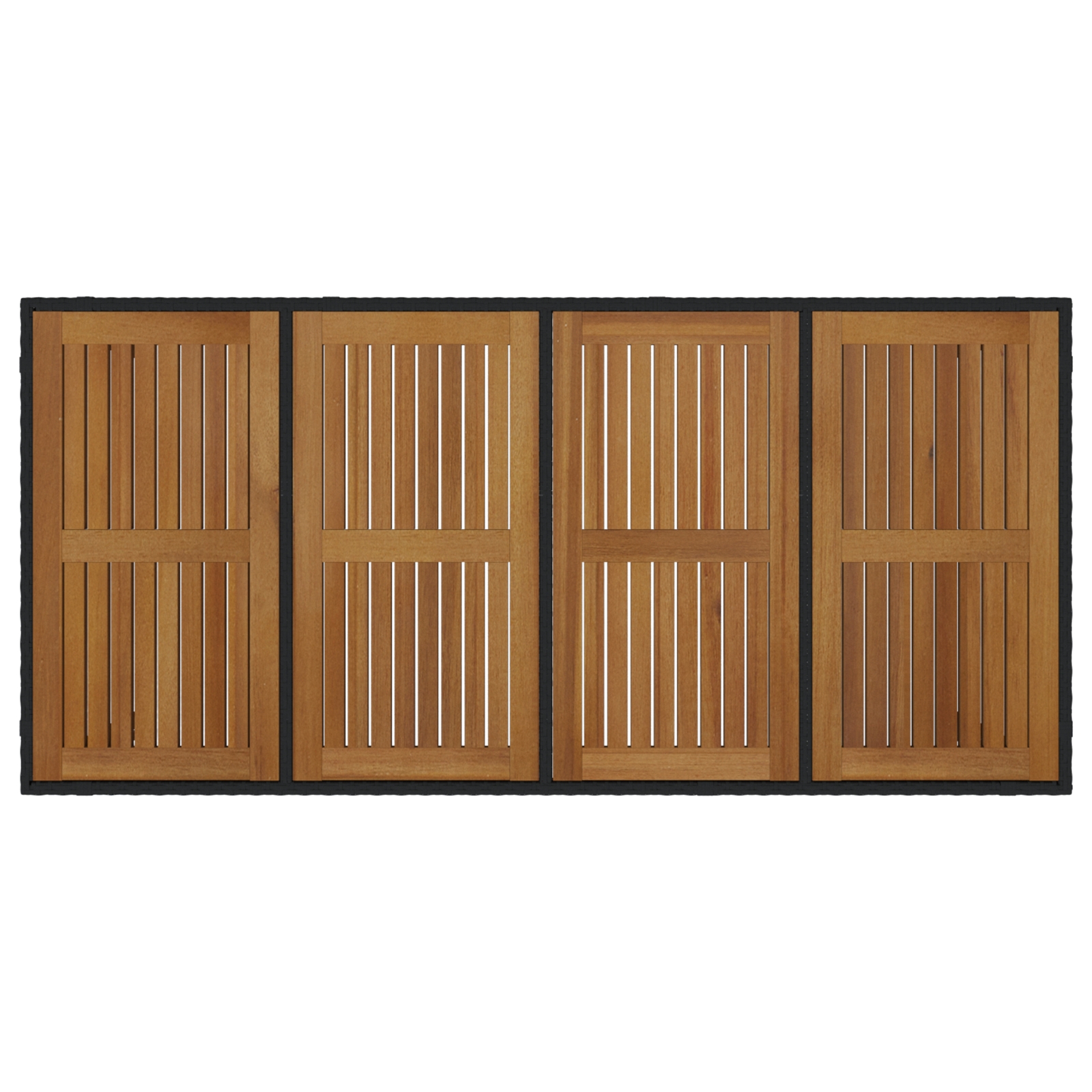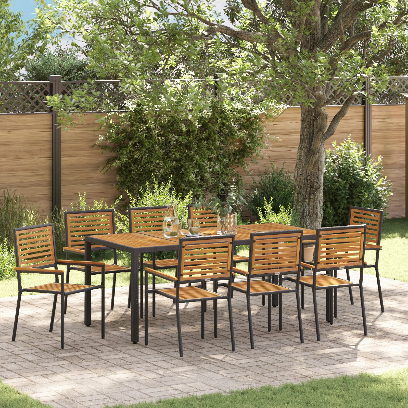Dieses großzügige Garten Esszimmer Set hat einen modernen Look und besteht aus einem stabilen schwarzen Metallrahmen mit einer natürlichen Holzplatte. Es eignet sich perfekt für große Außenbereiche wie Gärten und Terrassen, bietet Platz für acht Personen mit passenden Stühlen und ist ideal für gemeinsame Mahlzeiten mit Familie und Freunden. Große Sitzkapazität: Platz für bis zu acht Personen für sommerliche Zusammenkünfte. Haltbare Materialien: Hergestellt aus UV-beständigen Materialien, die auch unter den Elementen gut aussehen. Schick und modern: Die Kombination aus schwarzem Stahl und natürlichem Holz gibt jedem Außenbereich einen trendigen Akzent. Bequeme Sitze: Jeder Stuhl hat flache Armlehnen und eine unterstützende Rückenlehne für Komfort bei längeren Mahlzeiten. Einfach zu reinigen: Einfach die Oberflächen abwischen, um sie frisch und sauber zu halten.