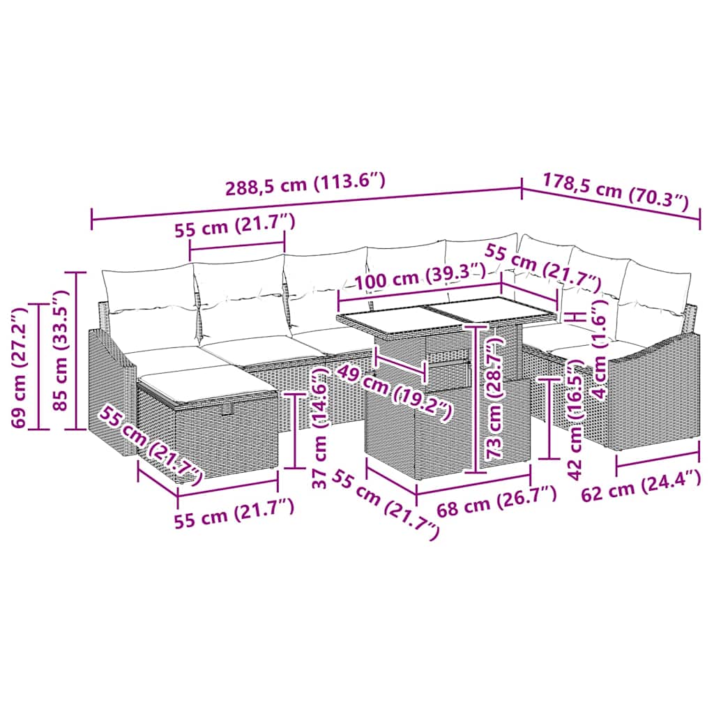 - Lieferumfang: 4 x Zweisitzer mit Stauraum, 1 x Ecksofa mit Stauraum, 2 x Armsofa mit Stauraum, 1 x Hocker mit Stauraum, 1 x Gartentisch