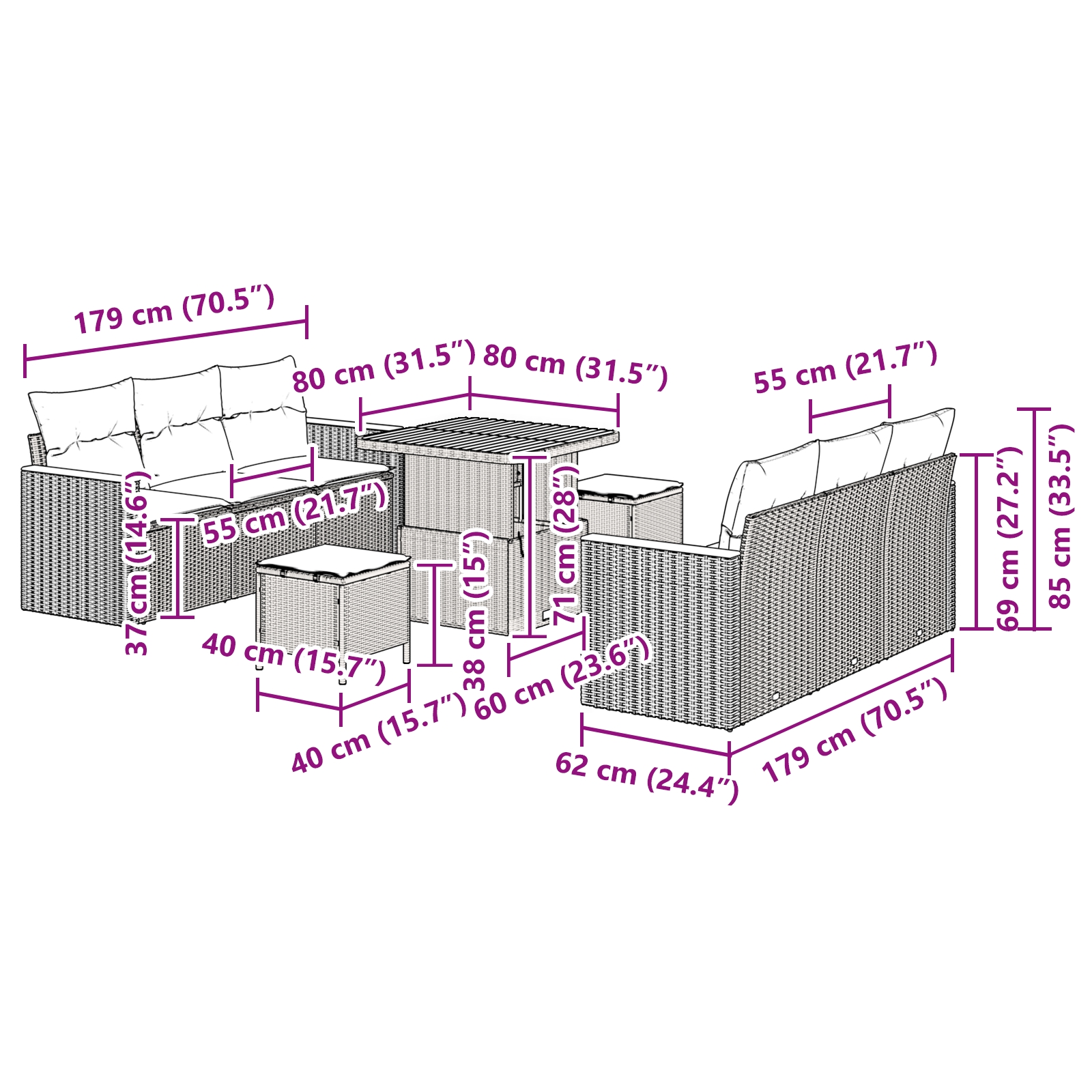 - Lieferumfang: Outdoor Sofa Set inklusive Kissen