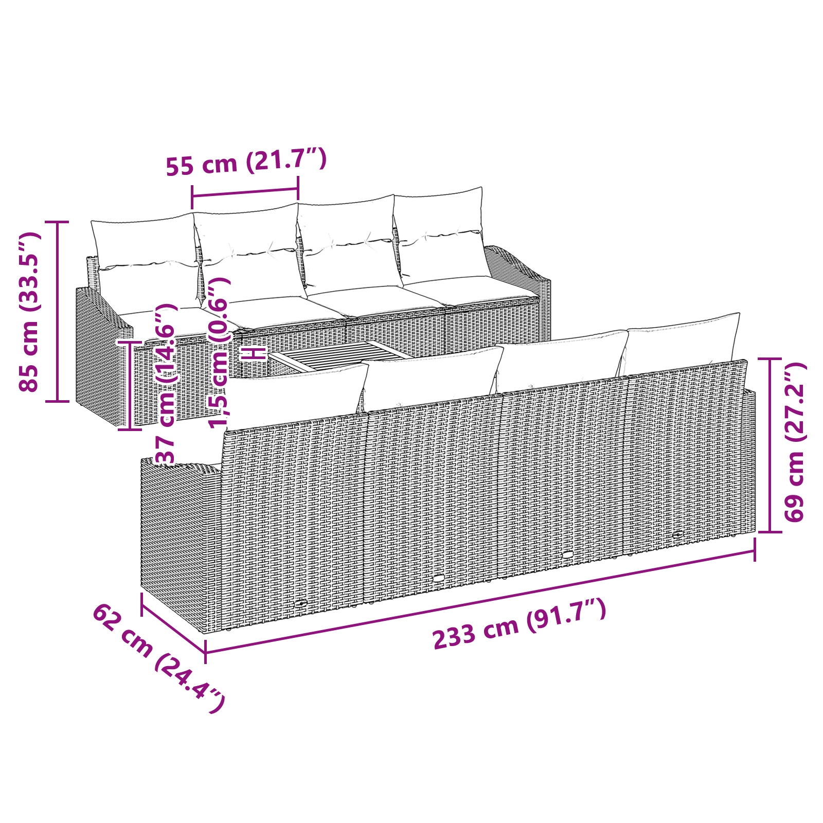 - Lieferumfang: 4 x Mittelsitz mit Stauraumfunktion, 2 x Armsofa mit Stauraumfunktion, 1 x Gartentisch
