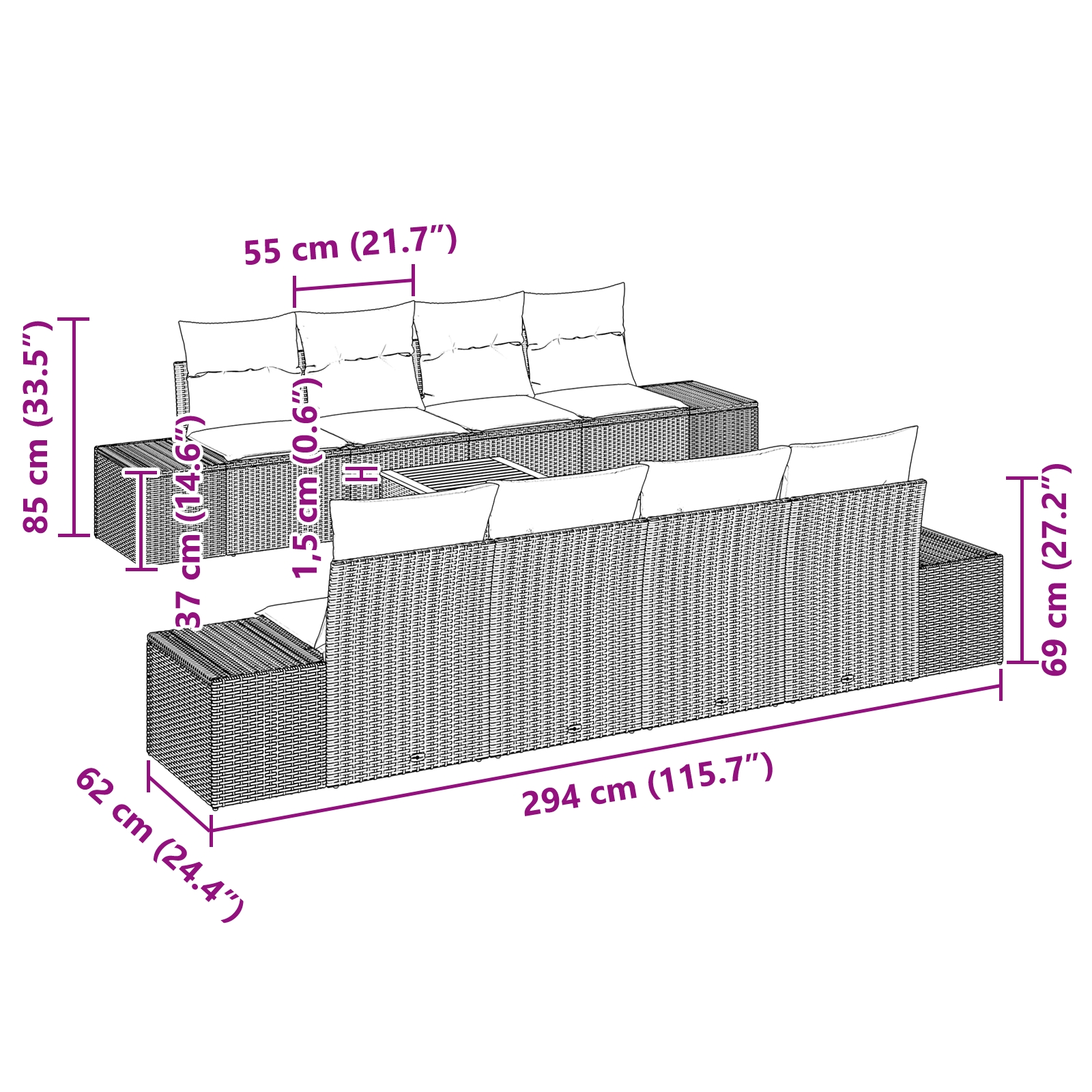 - Lieferumfang: 4 x Sitzteile mit Stauraum, 2 x Sofa mit Stauraum, 1 x Gartentisch
