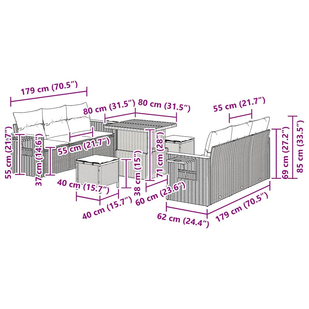 Dieses Garten Sofa Set vereint Funktionalität und Stil und hat einen modernen Look, der perfekt in jeden Außenbereich passt. Es besteht aus schickem beigem Poly Rattan und Akazienholz und bietet sowohl Komfort als auch ansprechendes Design – ideal für geselliges Beisammensein auf Balkon oder Terrasse. Mit diesem modularen Design kannst du die Anordnung deines Sofa Sets ganz einfach an deine Bedürfnisse für jede Outdoor-Gelegenheit oder Familientreffen anpassen. Der robuste, pulverbeschichtete Aluminiumrahmen sorgt dafür, dass das Sofa stabil bleibt und viele Saisonen übersteht, auch bei wechselndem Wetter. Die weichen Schaumkissen mit abnehmbaren Bezügen für einfache Reinigung bieten maximalen Komfort und machen das Set ideal, um mit Freunden zu chillen oder einen ruhigen Abend draußen mit einem Buch und einem Getränk zu genießen. Das wetterfeste Design dieses Garten Sofa Sets hält den Elementen stand, sodass du es draußen stehen lassen kannst, ohne dir Sorgen um Regen- oder Sonnenschäden machen zu müssen. Dieses großzügige Sofa Set bietet Platz für bis zu fünf Personen, fördert die soziale Interaktion und wertet deinen Außenbereich mit seinem ansprechenden Design auf.