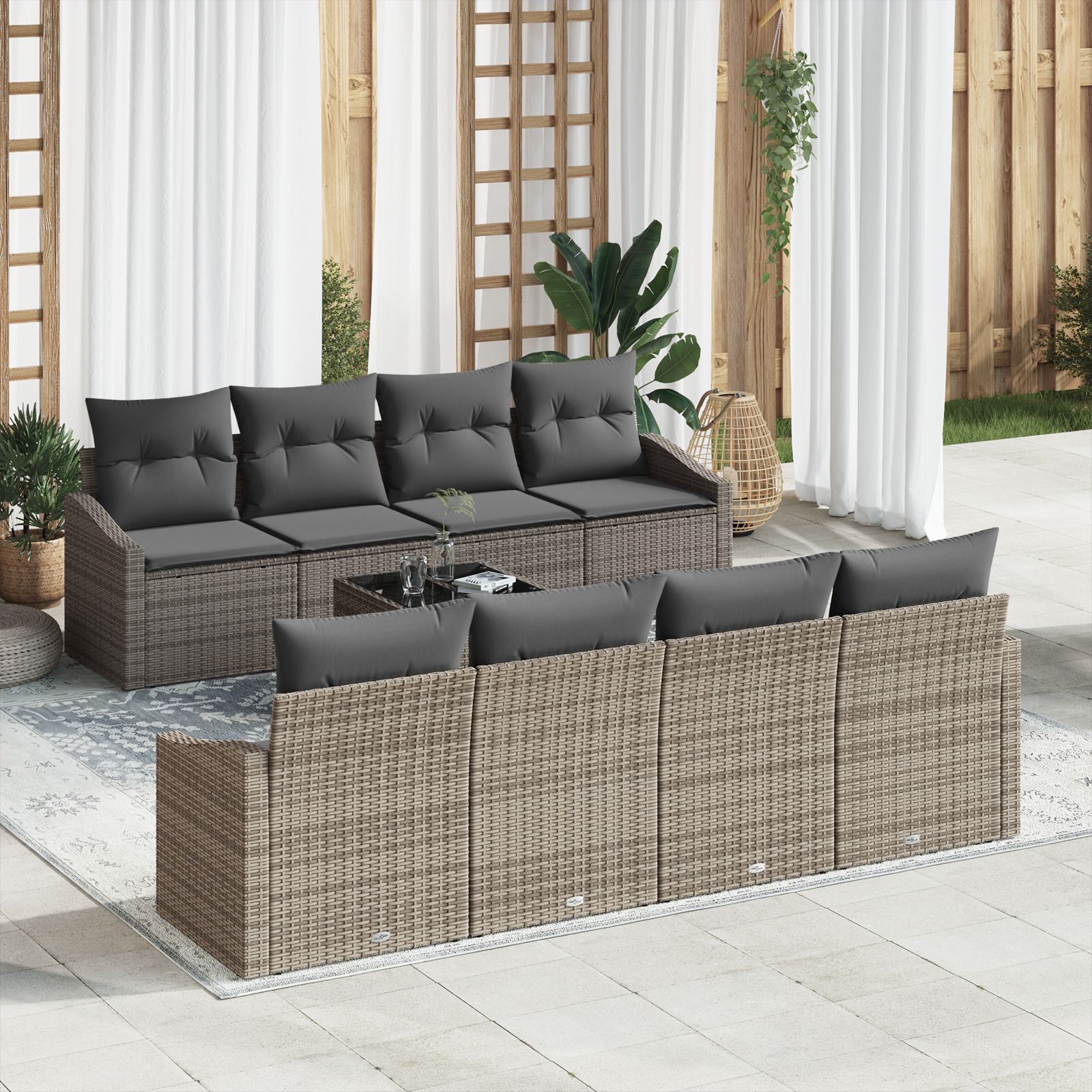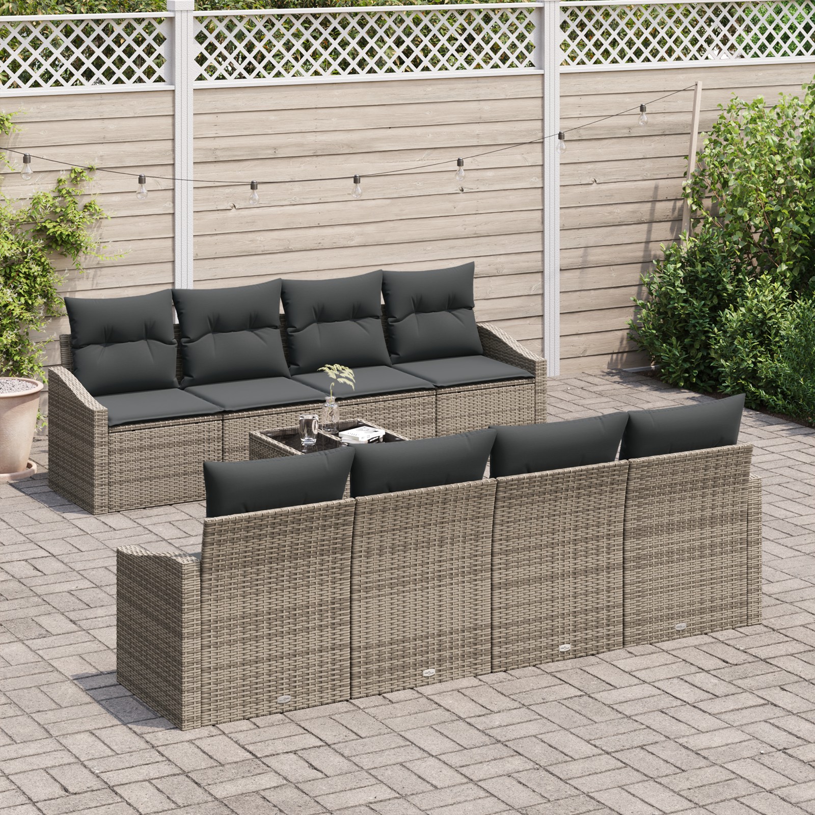 Dieses Garten Sofa Set schafft einen tollen Platz zum Entspannen und Chillen. Ideal für Gärten, Terrassen oder Balkone. Mit seinem modernen grauen Poly Rattan Stil und den bequemen grauen Kissen vereint es Coolness und Komfort perfekt für Zusammenkünfte mit Familie und Freunden. Wetterbeständig: Hergestellt aus wasserabweisendem Material, ist dieses Sofa Set für die Elemente gemacht und sorgt für eine lange Lebensdauer. Ideal für deinen Außenbereich, selbst an regnerischen Tagen kannst du relaxen. Geräumige Sitzgelegenheiten: Mit Platz für sechs Personen ist dieses Set perfekt für Grillpartys oder entspannte Treffen. Jeder kann es sich bequem machen. Moderne Ästhetik: Das schlichte Grau und die Kissen bringen Klasse in deinen Außenbereich. Das coole Design passt zu vielen Gartenstilen und macht dabei einen stylischen Eindruck. Einfach zu reinigen: Die Kissenbezüge lassen sich leicht abzippen und schnell waschen. Das hält alles frisch und sauber, ganz ohne Aufwand. Flexible Anordnung: Ob du einen modularen Look oder eine gerade Anordnung magst, dieses modulare Sofa lässt sich ganz nach deinem Wunsch anpassen – perfekt für jeden Außenbereich.