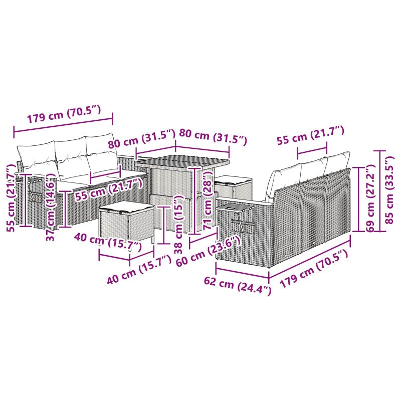 Dieses Garten Sofa Set verbindet Stil und Funktionalität mit einem modernen Look, der zu jeder Außenumgebung passt. Es besteht aus elegantem schwarzem Poly Rattan und natürlichen Holzelementen und bietet sowohl Komfort als auch eine coole Ausstrahlung. Damit ist es die beste Wahl für Treffen auf deinem Balkon oder deiner Terrasse. Das modulare Design lässt dich die Anordnung deines Sofa Sets leicht an deine Bedürfnisse für Outdoor-Events oder Familientreffen anpassen. Du wirst die Haltbarkeit des robusten pulverbeschichteten Stahlrahmens lieben, der das Sofa stark und stylisch durch viele Saisons hält, egal bei welchem Wetter. Die weichen Schaumkissen sind für maximalen Komfort geschichtet und machen dieses Set zum perfekten Platz für entspannte Abende mit Freunden oder einem Drink und einem Buch draußen. Mit wetterfesten Materialien ist dieses Garten Sofa Set für alle Wetterbedingungen geeignet, sodass du es draußen lassen kannst, ohne dir um Regen- oder Sonnenschäden Sorgen zu machen. Es bietet Platz für fünf Personen, was geselligen Spaß fördert und gleichzeitig deinen Außenbereich mit seinem auffälligen Design aufwertet.