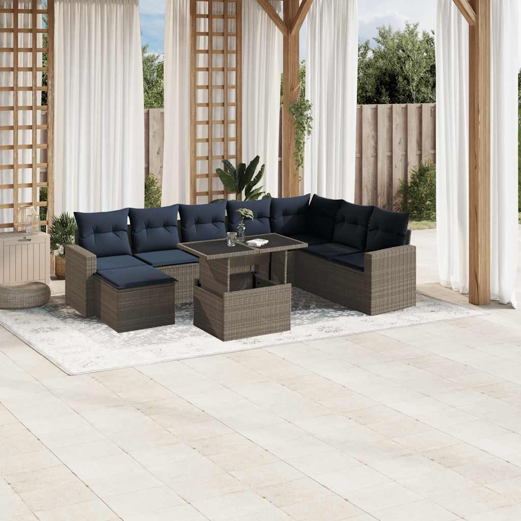 Dieses Gartensofa-Set ist die perfekte Ergänzung für Ihren Garten, Ihre Terrasse oder Ihren Innenhof und bietet einen komfortablen und einladenden Platz zum Plaudern mit Familie und Freunden oder einfach zum Entspannen und Genießen der Natur. Langlebiges Material: PE-Rattan, auch bekannt als Polyrattan, ist ein robustes, pflegeleichtes Kunststoffmaterial, das wie natürliches Rattan aussieht. Es ist leicht, einfach zu reinigen und wird aufgrund seiner Langlebigkeit und Wetterbeständigkeit häufig für Gartenmöbel verwendet.Verstellbare Tischplatte: Die Tischplatte kann angehoben werden, um den Tisch höher zu stellen, wodurch der Gartentisch von einem Couchtisch in einen Esstisch verwandelt wird. Es ist perfekt, um Gäste zu empfangen oder draußen zu essen.Bequemes Sitzerlebnis: Diese Gartenmöbel mit dick gepolsterten Kissen bieten ein bequemes Sitzerlebnis.Abnehmbarer und waschbarer Bezug: Diese Sitzkissen verfügen über abnehmbare Bezüge zum einfachen Waschen und Pflegen.Modulares Design: Dieses Gartenmöbelset hat ein modulares Design, wodurch es völlig flexibel und leicht zu bewegen ist, sodass Sie eine individuelle Gartenmöbelanordnung erstellen können. Gut zu wissen:Damit Ihre Gartenmöbel schön bleiben, empfehlen wir Ihnen, sie mit einer wasserdichten Abdeckung zu schützen.