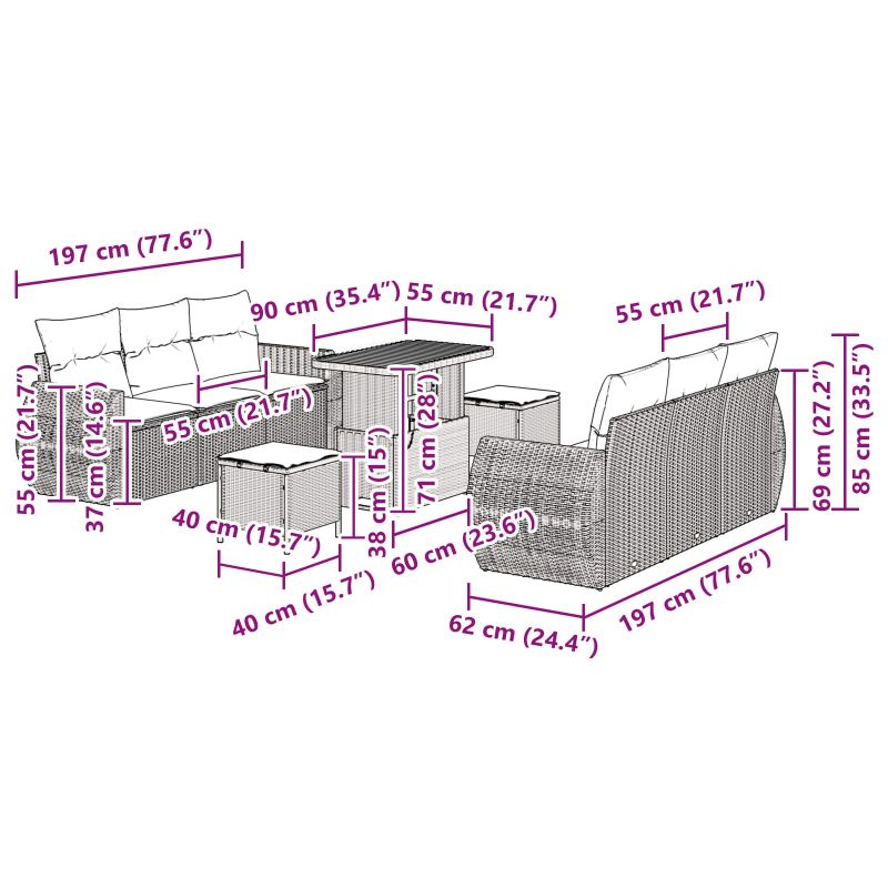 - Lieferumfang: 3 Sofas, 1 Tisch, 1 Kissen Set
