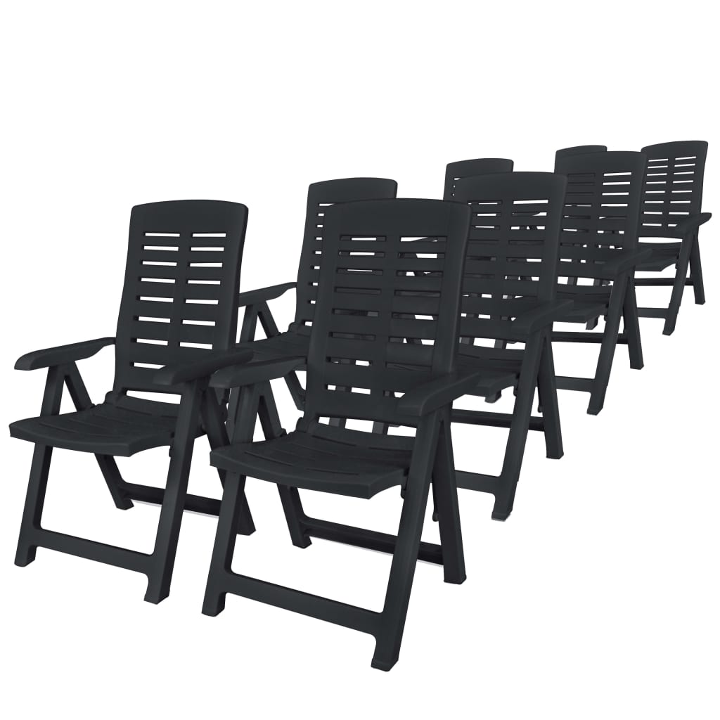 Unsere Garten-Essgruppe ist eine hervorragende Wahl für Mahlzeiten unter freiem Himmel - ob im Garten, auf der Terrasse oder dem Campingplatz. Die Garten-Essgruppe besteht aus strapazierfähigem Kunststoff, wodurch der Tisch und die Stühle wetterfest und leicht zu reinigen sind. Dieses Ess-Set aus Kunststoff ist außerdem leicht im Gewicht und daher einfach umher zu bewegen. Der Gartentisch verfügt über ein Sonnenschirmloch, sodass Sie ihn mit einem Sonnenschirm verwenden und Sie sich im Schatten abkühlen können. Die Rückenlehnen der Stühle lassen sich in 4 Positionen einstellen, so dass Sie immer die bequemste Position finden können. Die Stühle können bei Nichtgebrauch platzsparend zusammengeklappt werden. Die Lieferung beinhaltet 1 Tisch und 8 Klappstühle.