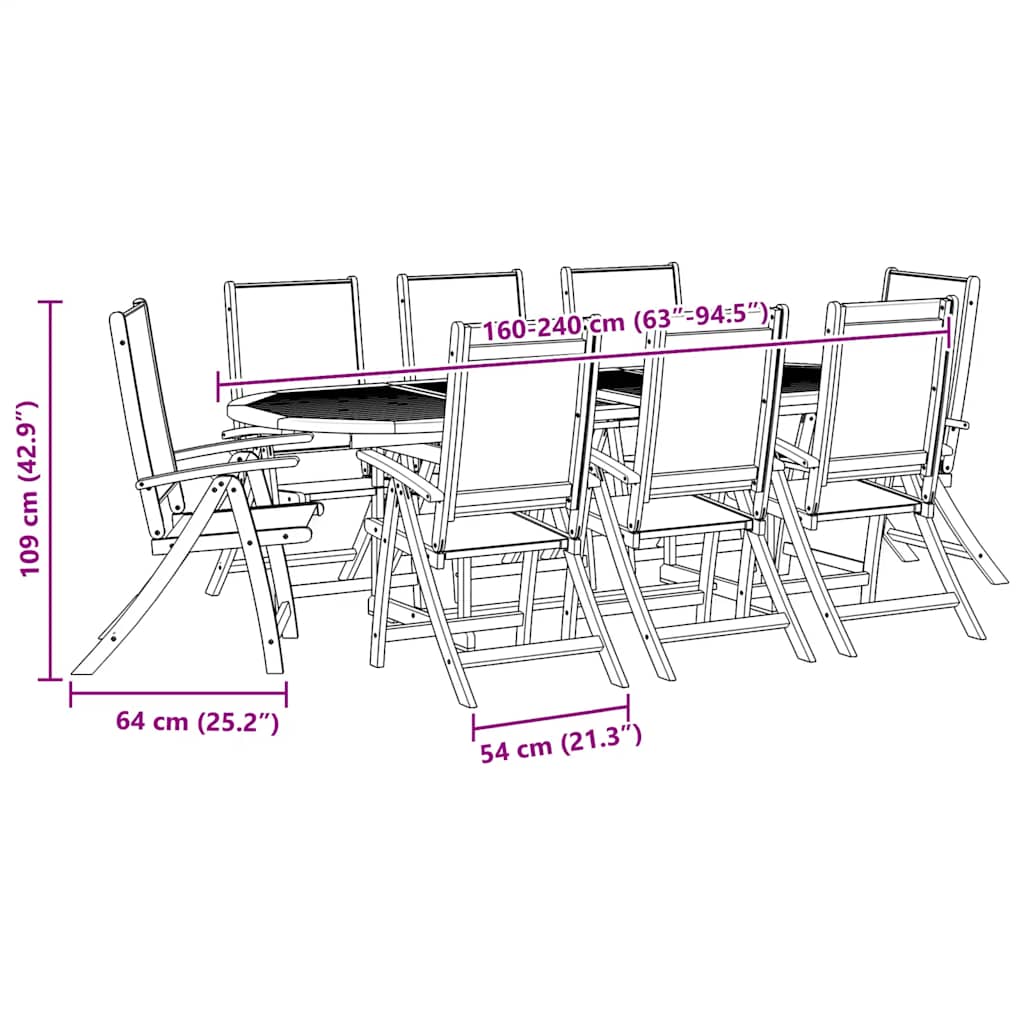 Genieße unvergessliche Mahlzeiten im Freien mit Familie und Freunden an dieser Essgruppe aus Holz! Massives Akazienholz: Die Outdoor-Essgruppe ist aus massivem Akazienholz gefertigt. Akazienholz ist ein wunderschönes Naturmaterial. Akazienholz ist ein tropisches Hartholz, das dicht, robust und langlebig ist. Verstellbar und klappbar: Der Gartenstuhl lässt sich in 5 Positionen verstellen, um stets die bequemste Sitzposition zu finden. Er lässt sich auch einfach zusammenklappen, um bei Nichtgebrauch Platz zu sparen. Praktisches Design: Dank seines speziellen Designs ist dieser Gartentisch ausziehbar – perfekt wenn zusätzlicher Platz benötigt wird. In der Tischplatte befindet sich ein Loch, sodass du leicht einen Sonnenschirm anbringen kannst, um einen schattigen Platz zu schaffen. Robuste Tischplatte: Dieser Garten-Esstisch verfügt über eine robuste Tischplatte. Darauf finden Snacks, Getränke und Lieblingsdekorationen Platz. Einfache Reinigung: Dank der Ölbeschichtung lassen sich der Gartentisch und die Stühle einfach mit einem feuchten Tuch reinigen. Gut zu wissen:Wir empfehlen dir, deine Gartenmöbel mit einer wasserdichten Hülle zu schützen, um lange Zeit eine ansprechende Optik aufzuweisen.
