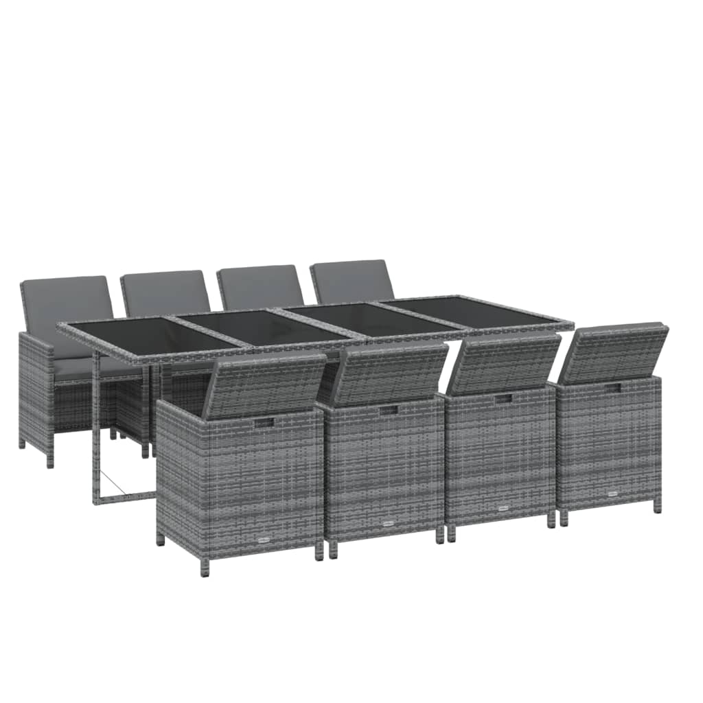 Mit ihrem eleganten und modernen Design ist diese klassische Garten-Essgruppe eine großartige Wahl zum Speisen oder Entspannen im Garten. Für den Außenbereich geeignet: Aus witterungsbeständigem PE-Rattan gefertigt, ist diese Outdoor-Essgruppe leicht zu reinigen, strapazierfähig und für den täglichen Einsatz im Outdoor-Wohnbereich geeignet. Robust: Dank des pulverbeschichteten Stahlrahmens ist die Garten-Essgruppe robust und langlebig. Komfortables Erlebnis: Die dicken, weichen, mit Schaumstoff gefüllten Sitz- und Rückenkissen sorgen für zusätzlichen Sitzkomfort. Flexibles Design: Sie können die Rückenlehne nach unten bringen und die Stühle unter dem Tisch aufbewahren, um bei Nichtgebrauch wertvollen Stauraum zu sparen. Dank ihrer Leichtbauweise lassen sich alle Artikel leicht umstellen. Hinweis:Um die Lebensdauer deiner Gartenmöbel zu verlängern, empfehlen wir dir, sie mit einer wasserdichten Hülle zu schützen.
