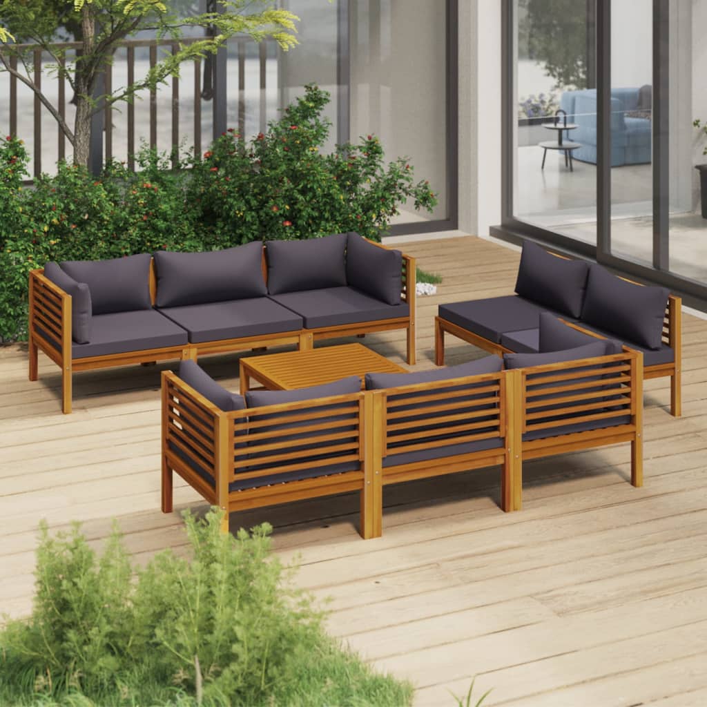 Dieses Lounge-Set aus Holz stellt eine perfekte Kombination aus Stil und Funktionalität dar. Auf dieser Sitzgruppe können Sie entspannende und beruhigende Momente mit Ihrer Familie und Freunden im Garten verbringen. Dank des massiven Akazienholzrahmens ist die Sofagarnitur stark, robust und langlebig; das mit Öl behandelte Holz macht dieses Gartenmöbel für den Außenbereich geeignet. Die abnehmbaren Kissen sind dick gepolstert, um einen hohen Sitzkomfort zu bieten. Ein Couchtisch mit einzigartigem Lattenrost-Design ist ebenfalls dabei. Dank des modularen Aufbaus können alle Teile nach Bedarf angeordnet und angepasst werden. Dieses Gartensofa wird sicherlich der Mittelpunkt Ihres Gartens oder Ihrer Terrasse sein. Hinweis: Um die Lebensdauer Ihrer Gartenmöbel zu verlängern, empfehlen wir Ihnen, diese regelmäßig zu reinigen und im Freien vor Niederschlägen oder starken Sonnenstrahlen zu schützen.Reinigung: Verwenden Sie eine milde SeifenlösungLagerung: Wenn möglich, an einem kühlen, trockenen Ort im Innenbereich lagern. Wenn das Produkt im Freien gelagert wird, schützen Sie es mit einer wasserdichten Abdeckung. Wischen und trocknen Sie das überschüssige Wasser oder den Schnee nach Regen oder Schneefall von ebenen Flächen. Sorgen Sie für eine ausreichende Luftzirkulation, um feuchtigkeitsbedingte Schäden zu vermeiden.
