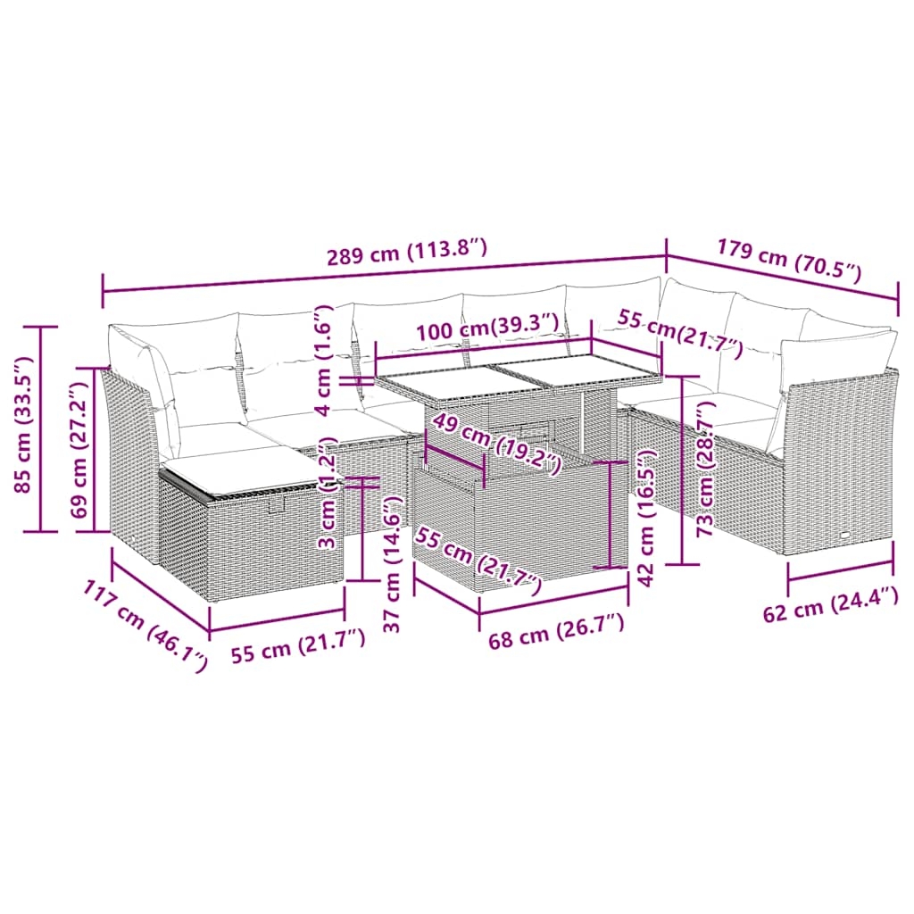 Diese Garten-Sofagarnitur ist die perfekte Ergänzung zu deinem Garten, deiner Terrasse oder deinem Innenhof. Sie bietet einen bequemen und einladenden Platz, um mit Familie und Freunden zu plaudern oder dich einfach nur zu entspannen und das Leben im Freien zu genießen.Langlebiges Material: PE-Rattan, auch als Poly Rattan bekannt, ist ein robustes, pflegeleichtes synthetisches Material, das die Optik von natürlichem Rattan aufweist. Es kennzeichnet sich durch ein geringes Eigengewicht und lässt sich einfach reinigen. Aufgrund seiner Haltbarkeit und Witterungsbeständigkeit wird es häufig bei der Herstellung von Gartenmöbeln verwendet.Stauraum mit wasserfestem Beutel: Jedes Gartensofa verfügt über ein Staufach unter der Sitzfläche, das mit einem wasserfesten Beutel zur Aufbewahrung von Kissen, Spielzeug und anderen Gegenständen versehen ist. Die Kissen sind mit Bezügen versehen und lassen sich mit Klettverschlüssen fest und sicher an den Sofas befestigen.Abnehmbarer und waschbarer Bezug: Diese Sitzkissen verfügen über abnehmbare Bezüge für einfaches Waschen und Pflegen.Modulares Design: Dank des modularen Designs lassen sich die Gartenmöbel völlig flexibel und einfach umstellen, um deinen Außenbereich ganz individuell zu gestalten.Gut zu wissen:Wir empfehlen dir, deine Gartenmöbel mit einer wasserdichten Hülle zu schützen, um lange Zeit eine ansprechende Optik aufzuweisen.