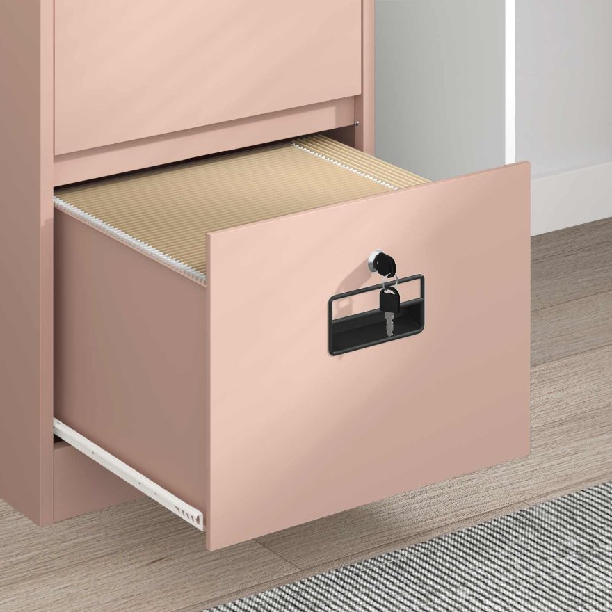 Dieser moderne Aktenschrank ist die perfekte Mischung aus industriellem und modernem Design und passt in jedes Büro. Mit seiner schlanken Form und neutralen Farben fügt er sich gut in jede Einrichtung ein. Hergestellt aus robustem Kaltstahl, ist er die ideale Wahl für die Dokumentenorganisation in professionellen Umgebungen. Sein Design strahlt Einfachheit und Funktionalität aus, mit klaren Linien und wenigen Ornamenten. Kaltgewalztes Stahl-Gestell Der Aktenschrank ist aus starkem Kaltstahl gefertigt, der für seine Langlebigkeit bekannt ist. Diese Bauweise sorgt dafür, dass er auch in belebten Büros lange hält. Der schicke, industrielle Look mit minimalistischem Design und metallischer Oberfläche bringt frischen Wind in jedes Büro. Praktische Ausziehregale Die herausziehbaren Regale bieten leicht Zugang zu deinen Sachen und ersparen das Bücken. So hast du alles schnell im Blick – ganz nach deinem Bedarf. Das schlichte Design passt perfekt zu modernen und industriellen Stilen. Sichere Zylinderschlösser Ausgerüstet mit Zylinderschlössern sorgt der Schrank für Sicherheit. Jedes Schloss schützt die Schubladen und hält unbefugte Personen fern. Das ist besonders wichtig, wenn du mit sensiblen Dokumenten arbeitest. Flexible Anwendung Der Schrank ist vielseitig und kann überall eingesetzt werden – im Büro, im Arbeitszimmer oder im Studio. Seine rechteckige Form passt in jede Ecke oder neben den Schreibtisch. Das geometrische Muster bringt Charakter ins Spiel, ohne aufdringlich zu wirken. Wenig Pflegeaufwand Um diesen Schrank immer gut aussehen zu lassen, brauchst du nicht viel Aufwand. Ein einfaches Wischen mit einem feuchten Tuch reicht, um Staub zu entfernen. Es sind keine aggressiven Chemikalien nötig, wodurch das Reinigen super einfach ist.