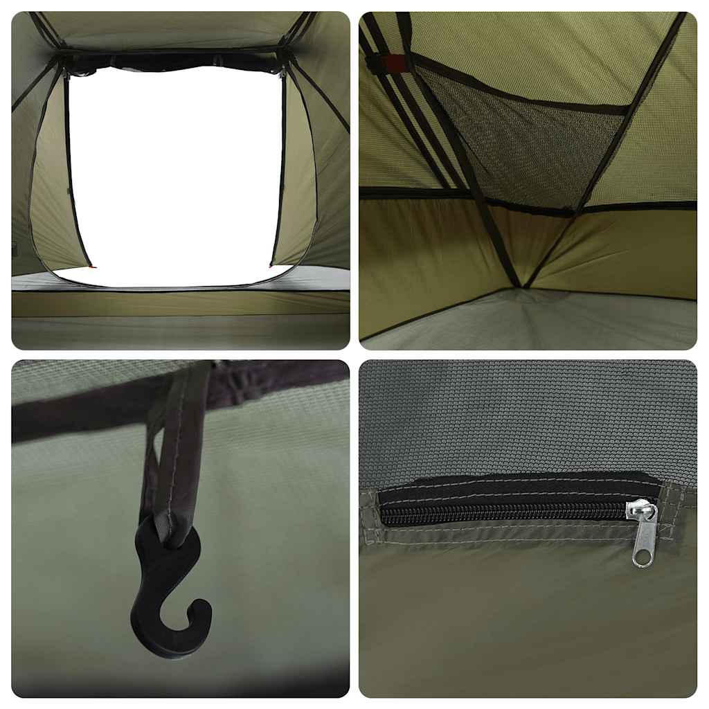 Dieses Angelzelt eignet sich perfekt, um beim Angeln etwas Schatten zu spenden und Schutz vor schädlichen UV-Strahlen zu bieten. Rundum wasserdichtes Design: Aus Polyester mit PU-Beschichtung gefertigt, ist dieses Campingzelt wasser- und winddicht. Die versiegelten Nähte verhindern effektiv das Eindringen von Regenwasser, während die strapazierfähige Bodenplane für ein trockenes und komfortables Interieur sorgt. Einfacher Auf- und Abbau: Die hochflexiblen und leichten Glasfaserstangen und das praktische Steckverbindungssystem machen den Auf- und Abbau des Zeltes zum Kinderspiel. Einfacher Zugang: Der Eingang mit Reißverschluss ermöglicht einen einfachen Zugang. Er lässt sich einfach aufrollen und mit Knebelknöpfen befestigen. So kannst du für eine gute Luftzirkulation und viel natürliches Licht im Zelt sorgen. Praktischer Zugang zum Stromkabel: Dank des E-Anschlusses kannst du ganz einfach ein Verlängerungskabel von einer externen Stromquelle an dein Zelt anschließen.Leicht und tragbar: Dank des faltbaren und leichten Designs lässt sich das Zelt einfach verpacken und in der mitgelieferten Tragetasche mühelos verstauen und transportieren. Achtung:Halte alle Flammen und Wärmequellen von diesem Zeltstoff fern.