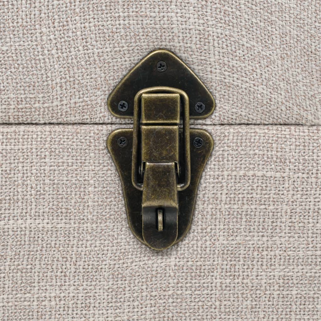 Verleihen Sie Ihrem Interieur mit unserem Set von 3 Aufbewahrungsbänken einen Hauch von Klassik. Die Aufbewahrungsbänke sind aus massivem Tannenholz gefertigt. Sie haben gepolsterte Sitzflächen, die mit einem modernen Stoff gepolstert sind und robuste Stahlbeine haben. Sie bieten im Inneren viel Platz, um eine Vielzahl von verschiedenen Gegenständen außer Sichtweite, aber dennoch in Reichweite, aufzubewahren. Bei Bedarf können die 2 kleinen Bänke in der größeren aufbewahrt werden. Dank ihrer robusten Griffe lassen sich die Aufbewahrungsbänke auch leicht bewegen und in jedem Raum platzieren. Die Lieferung erfolgt inklusive 3 Bänke. Die Montage dieses Artikels ist einfach.
