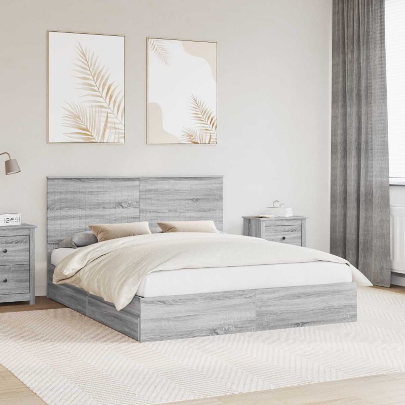 Dieser moderne Bettrahmen verbindet Ästhetik und Funktionalität. Mit seinem zeitgemäßen Look bietet er eine Balance aus Einfachheit und Praktikabilität – perfekt für alle, die eine schlichte, aber gezielte Ergänzung für ihr Schlafzimmer suchen. Mit seiner stabilen Holzwerkstoff-Konstruktion und dem schicken Kopfteil bringt er einen Hauch von Stil in jeden Raum. Wer moderne Designs liebt, findet in diesem Bett die ideale Mischung aus Form und Funktion. Gestell aus Holzwerkstoff : Dieser Bettrahmen ist aus solidem Holzwerkstoff gefertigt, das für seine Langlebigkeit bekannt ist. Es bietet eine zuverlässige Basis für den täglichen Gebrauch und bleibt zudem im Mittelpunkt deines modernen Zuhauses. Eingebaute Stauraumschubladen : Der Rahmen nutzt den Platz unter dem Bett optimal aus und hat praktische Schubladen mit Griffen, die genug Platz für Wäsche oder persönliche Dinge bieten. Dieses durchdachte Design ist ideal für alle, die Platz sparen und dabei stilvoll bleiben wollen. Einfache Montage : Der Bettrahmen ist so konzipiert, dass du ihn einfach aufbauen kannst – du brauchst nur zwei Personen und einen Schraubendreher. So wird der Aufbau zum Kinderspiel und du kannst dein neues Bett schnell nutzen, ohne dich mit komplizierten Anleitungen herumschlagen zu müssen. Modernes minimalistisches Design : Mit einem Fokus auf klare Linien und Funktionalität fügt sich dieser Rahmen mühelos in verschiedene Schlafzimmerstile ein. Seine schlichte Schönheit schafft eine einladende Atmosphäre für alle, die einen modernen Look ohne überflüssigen Schnickschnack möchten. Einfache Pflege : Du kannst diesen Bettrahmen problemlos pflegen, indem du ihn einfach mit einem feuchten Tuch reinigst. Diese einfache Pflegeanleitung erleichtert es, den guten Eindruck des Bettes zu bewahren, perfekt für einen vollen Lebensstil.
