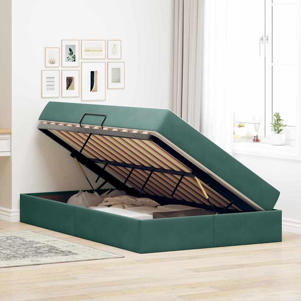 Dieses moderne Stauraumbett mit Matratze bringt Funktionalität und stylisches Design zusammen, ideal für jedes Schlafzimmer, das den Platz optimal nutzen und gleichzeitig schick aussehen will. Mit klaren Linien und minimalistischer Optik ist es eine smarte Speicherlösung, die auf Stil und Komfort nicht verzichtet. Die besondere Materialkombination stellt sicher, dass dein Lebensraum nicht nur schöner aussieht, sondern auch einen angenehmen Schlafplatz bietet. Materialien: Mit einem luxuriösen Samtüberzug sorgt die Matratze für Komfort und sieht gleichzeitig schick aus. Samt hat eine weiche Oberfläche, die deinem Schlafzimmer eine elegante Note gibt. Diese Materialwahl, zusammen mit dem stabilen Metallrahmen, schafft eine haltbare Struktur, die pflegeleicht ist. Enthaltene Komponenten: Das Bett hat einen stabilen Lattenrahmen, der für einen sicheren Schlafplatz sorgt. Dazu gehört eine mittelfeste Matratze, die für jedes Schlafbedürfnis geeignet ist. Die Kombination aus Schaum und Taschenfederkern minimiert die Bewegungsübertragung und sorgt für optimalen Halt, was deinen Schlaf verbessert. Merkmale / Funktion / Design: Der hydraulische Seitenlift-Mechanismus hebt dieses Bett von anderen ab und macht den Stauraum leicht zugänglich. Dank des sanften Anhebens durch den Gaslifter kannst du persönliche Gegenstände bequem verstauen, ohne das schicke Design zu stören. Mit seinem modernen Look, der durch schlichte Funktionalität besticht, passt es perfekt in jede Einrichtung. Empfohlene Verwendungen: Das Stauraumbett ist perfekt für Schlafzimmer, in denen man den Platz optimieren möchte. Ob im Hauptschlafzimmer oder im Gästezimmer, es bietet einen komfortablen Schlafplatz und gleichzeitig eine praktische Stauraumlösung – ideal für städtisches Wohnen oder enge Apartments. Pflege & Wartung: Um den luxuriösen Look des Samtes zu bewahren, solltest du regelmäßig saugen. Für Flecken ist eine sanfte, gezielte Reinigung mit einem milden Textilreiniger die beste Wahl. Regelmäßige Kontrollen des hydraulischen Hebesystems sichern seine Funktionalität und sorgen dafür, dass das Bett lange schön bleibt.