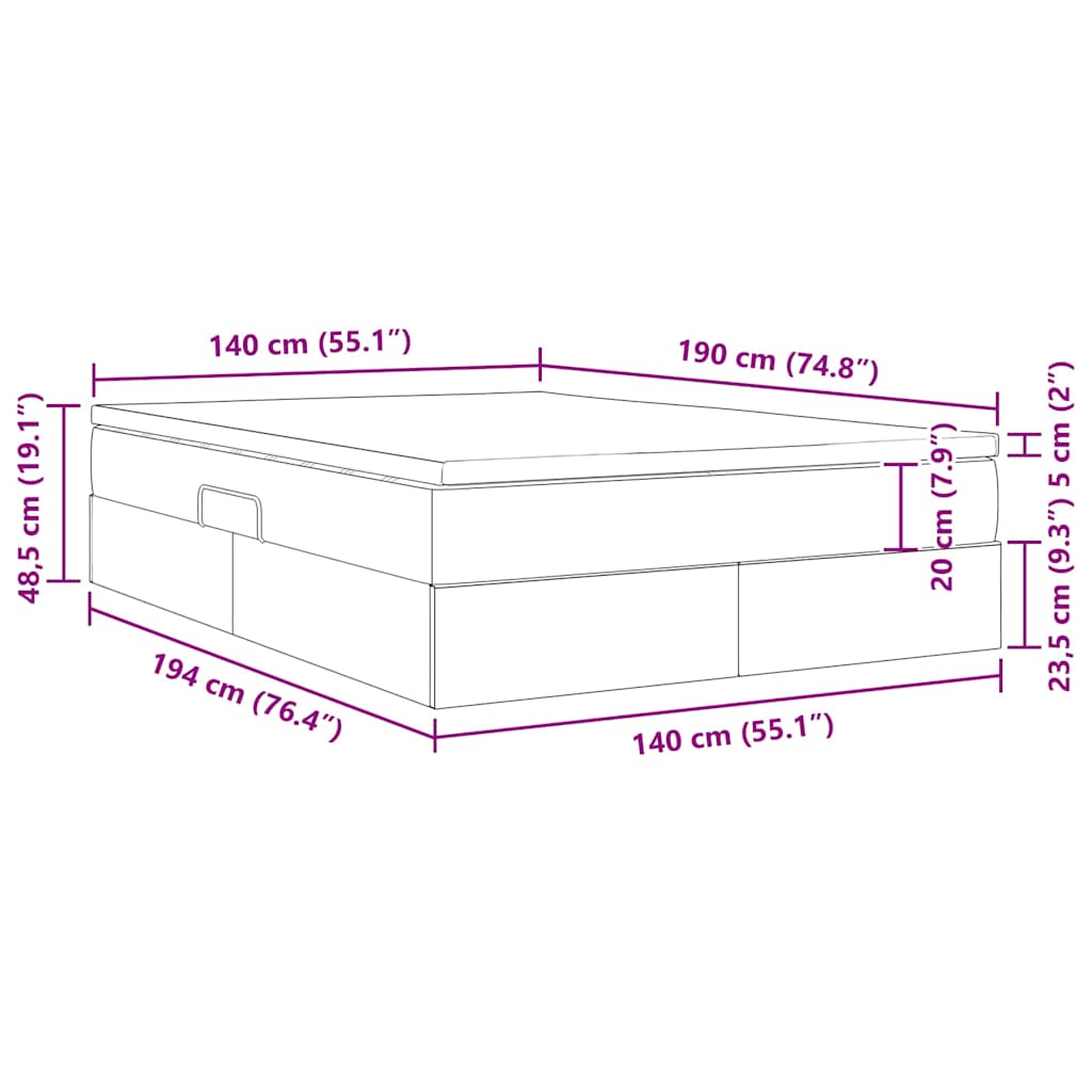 - Matratzengröße: Kurzes Doppelbett (140 cm x 190 cm oder 55" x 75")