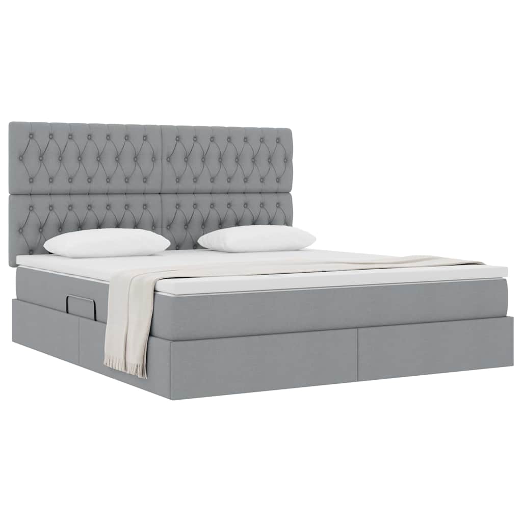 Aufbewahrungsbett mit Matratze Hellgrau 180 x 200 cm Kunstleder