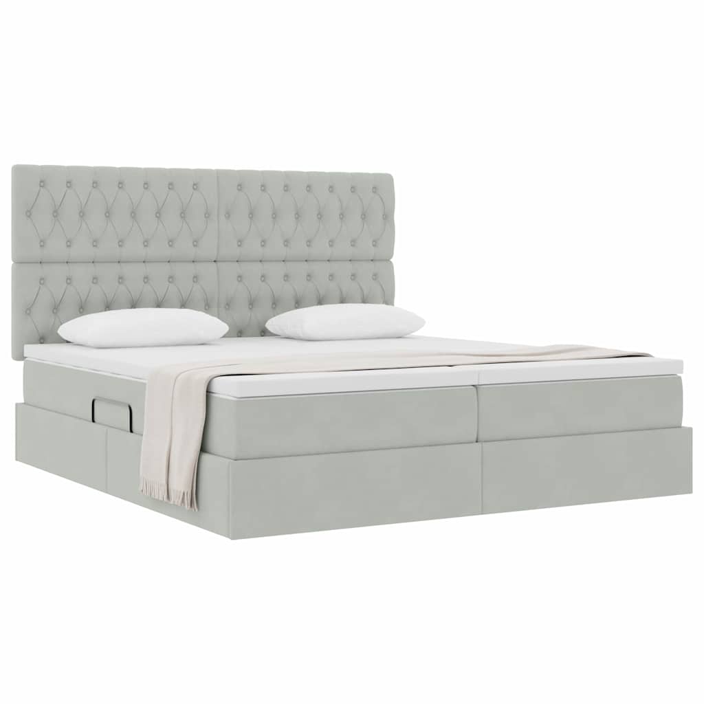 Dieses stylische Speicherbett vereint Funktionalität und Design und passt perfekt in moderne Schlafzimmer. Das Samt-Kopfteil sorgt für Eleganz und Komfort. Das schlanke Design bietet viel Stauraum, was es ideal für alle macht, die sowohl auf Aussehen als auch auf Praktikabilität Wert legen. Es fügt sich harmonisch in verschiedene Einrichtungsstile ein und sorgt für eine gemütliche und ansprechende Schlafumgebung für Einzelpersonen und Paare. Elegantes Kopfteil Das samtbezogene Kopfteil sorgt für eine angenehme Atmosphäre und erhöht den Komfort beim Lesen oder Entspannen. Hydraulischer Lift Mit dem praktischen hydraulischen Hebesystem kommst du problemlos an den Stauraum unter dem Bett. Perfekt für Bettwäsche, Kissen oder saisonale Kleidung, vereint dieser Mechanismus Komfort und Zweckmäßigkeit. Mittel feste Matratze Die Matratze sorgt für einen guten Halt und passt sich verschiedenen Schlafpositionen an, ideal für einen erholsamen Schlaf. Ihre mittlere Festigkeit ist perfekt für alle, die eine Mischung aus Weichheit und Unterstützung wünschen. Großer Stauraum Mit viel Platz unter dem Bett ist dieses Möbelstück eine tolle Lösung für alle, die regelmäßig ihren Stauraum nutzen wollen. Der hydraulische Hebemechanismus ermöglicht einen einfachen Zugang zu den gelagerten Sachen. Stylischer Metallrahmen Hergestellt aus robustem Metall, bietet dieses Bett einen eleganten Look und ist gleichzeitig stabil und langlebig. Ideal für moderne Innenräume integriert es Stil und Funktionalität perfekt.