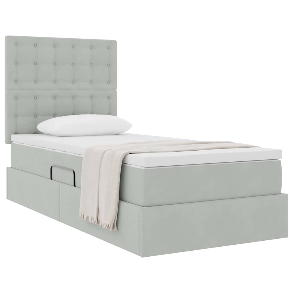Aufbewahrungsbett mit Matratze Hellgrau 90 x 200 cm Samt