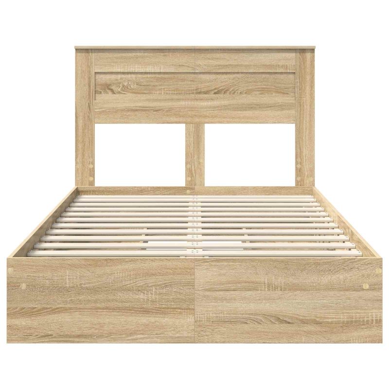 Dieser schicke Stauraum-Bettrahmen ist die beste Lösung für jedes moderne Schlafzimmer. Sein schlankes, rechteckiges Design aus Holzwerkstoff passt perfekt in zeitgenössische Innenräume. Die Kombination aus klaren Linien und nützlichen Details sorgt für einen echten Hingucker in deinem Schlafbereich. Dieser Bettrahmen bietet nicht nur eine bequeme Basis für deine Matratze, sondern hat auch eine clevere Stauraumlösung, ideal für alle, die Platz im Schlafzimmer mit Stil nutzen wollen. Konstruktion aus Holzwerkstoff: Dieser Bettrahmen besteht aus hochwertigem Holzwerkstoff, der eine stabile Struktur garantiert, die den täglichen Belastungen standhält. Das Material bietet über die Zeit eine starke Leistung und behält seine Stabilität, während es eine solide Grundlage für deine Matratze bleibt. Die Wahl des Materials macht die Reinigung kinderleicht – ein feuchtes Tuch reicht, um Staub und Schmutz zu entfernen. Traditioneller Schubladenmechanismus: Das Bett hat praktische Schubladen mit traditionellen Griffen, die leicht zu öffnen sind, um auf die aufbewahren Dinge zuzugreifen. Diese Gestaltung erhöht die Funktionalität des Bettes und hält dein Schlafzimmer ordentlich, während es genug Platz für Bettwäsche, Kleidung oder andere Essentials bietet. Schlanker Plattform-Lattenrost: Dieses Bett hat einen Plattform-Lattenrost, der gleichmäßige und feste Unterstützung für die Matratze bietet und den Bedarf an einer schweren Boxspring reduziert. Der Lattenrost sorgt für Luftzirkulation um die Matratze und verbessert den Komfort sowie die Lebensdauer der Matratze. Er fügt sich in das moderne Design ein und erfüllt die ergonomischen Bedürfnisse. Geräumige Schlafzimmerlösung: Perfekt für Haupt-, Gäste- oder Kinderzimmer. Das clevere Design des Stauraum-Bettes optimiert den verfügbaren Platz, ohne auf Stil zu verzichten. In kleinen Räumen hilft es, die Bodenfläche aufzuräumen, und in größeren Räumen ist es ein echter Hingucker. Die moderne Ausstrahlung spricht mühelos verschiedene Einrichtungsstile an. Einfache Pflege & Wartung: Achte darauf, den Bettrahmen regelmäßig mit einem feuchten Tuch abzuwischen, um sein Aussehen zu erhalten. Vermeide stark chemische Reinigungsmittel, um die Oberflächenbeschichtung zu schonen. Diese pflegeleichte Methode sorgt dafür, dass dein Bett über Jahre hinweg ein schöner Blickfang in deinem Raum bleibt.