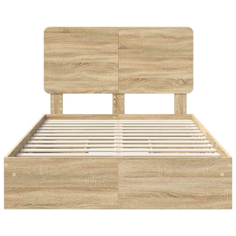 Dieses moderne Bettgestell kombiniert Funktionalität mit schickem Design, perfekt für Stadtwohnungen, die einen aufgeräumten Look suchen. Der Holzwerkstoff sieht elegant aus und passt zu vielen Einrichtungsstilen, sodass ein gemütlicher Rückzugsort nach einem langen Tag entsteht. Entwickelt für alle, die sowohl Form als auch Funktion schätzen, zeigt dieses Stück zeitgemäße Innovation. Konstruktion aus Holzwerkstoff Der Rahmen ist robust und unterstützt jede Standardmatratze mit der nötigen Stabilität über die Jahre. Die Holzmaserung setzt einen schönen Akzent und hebt die Atmosphäre deines Schlafzimmers angenehm hervor. Praktische Schubladen Die eingebauten Schubladen unter dem Bett gleiten leicht auf und bieten eine super Lösung, um Bettwäsche oder saisonale Kleidung ordentlich zu verstauen, sodass alles griffbereit ist. Das klassische Griffdesign macht den Zugriff einfach und intuitiv. Moderne Ästhetik Das Bett bringt Einfachheit und Eleganz zusammen, mit klaren Linien und minimalen Verzierungen, was es zu einer tollen Ergänzung für moderne Schlafzimmer macht. Dieses Design spricht verschiedene Geschmäcker an und passt sich leicht an unterschiedliche Möbelstile oder Farbpaletten an. Einfache Montage Entwickelt für eine unkomplizierte Montage benötigt dieses Bett nur einen Schraubendreher und zwei Personen. Die verständlichen Anleitungen sorgen dafür, dass du ohne viel Aufwand deine neuen Möbel genießen kannst. Pflege & Wartung Damit das Bett frisch bleibt, musst du nur mit einem feuchten Tuch drüberwischen, um Staub oder Flecken zu entfernen. Diese einfache Pflegeroutine sorgt dafür, dass dein Möbelstück über die Jahre ansprechend und funktional bleibt.
