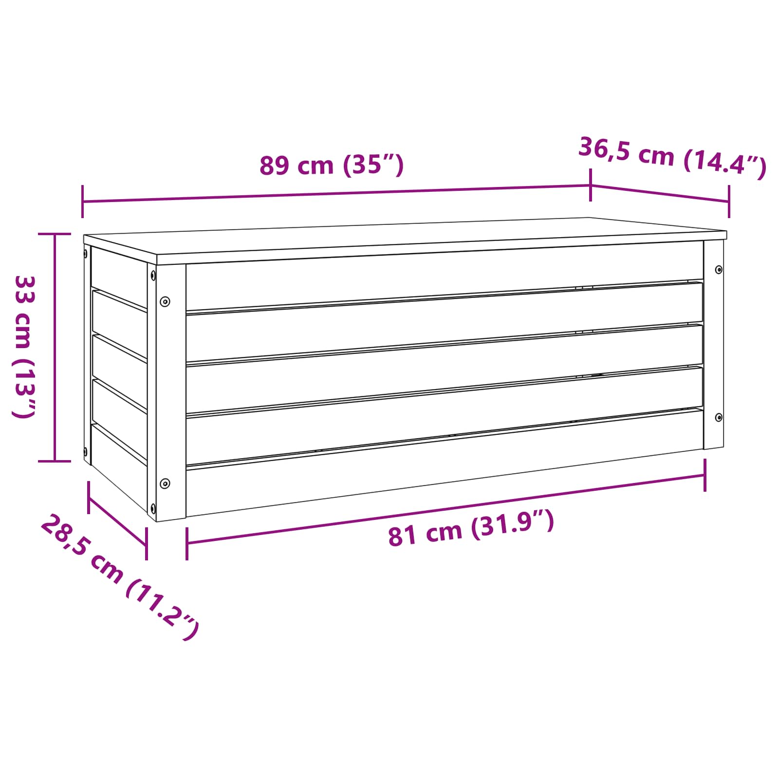 - Gesamtabmessungen: 89 x 36,5 x 33 cm (L x B x H)
