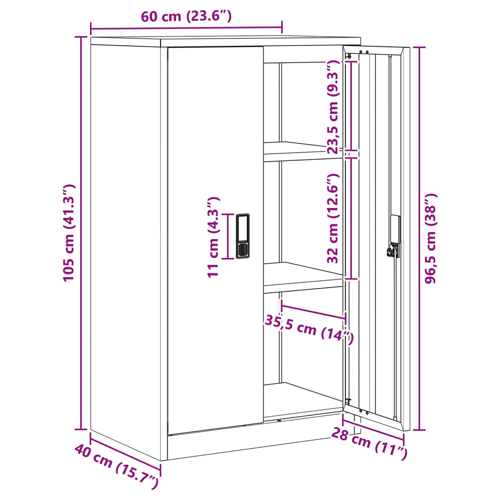 Dieser moderne Stauraumschrank bringt klare, elegante Linien und Funktionalität zusammen. Er ist die perfekte Ergänzung für jeden zeitgenössischen Raum. Aus kaltgewalztem Stahl gefertigt, bietet er nicht nur Stabilität, sondern setzt auch schicke metallische Akzente. Mit seinen durchdachten Details sorgt der abschließbare Schrank für Sicherheit deiner Wertsachen und hilft dir, Ordnung in deinem Büro oder Arbeitsbereich zu halten. Kaltgewalzter Stahl: Dieser Schrank ist aus robustem kaltgewalzten Stahl gemacht. Er bietet hohe Haltbarkeit und bleibt auch bei täglichem Gebrauch stabil. Das Material sieht nicht nur gut aus, sondern sorgt auch dafür, dass der Schrank lange hält und viele Dinge sicher aufbewahrt. Abschließbare Türen: Die Türen sind abschließbar und schützen deine wertvollen oder vertraulichen Dinge. Diese Eigenschaft ist besonders wichtig im Büro, wo Privatsphäre und Vertraulichkeit wichtig sind, oder zu Hause, wenn Kinder da sind. Industrielles & modernes Design: Die Kombination aus industriellen und modernen Designelementen verleiht deinem Raum einen coolen Touch. Die lackierte Oberfläche schützt vor Kratzern und sorgt für einen tollen Glanz, was den Schrank sowohl funktional als auch stylisch macht. Viel Stauraum: Mit viel Platz ist der Schrank ideal für alles, was du aufbewahren möchtest – seien es Büroartikel, Ordner oder persönliche Gegenstände. So wird die Organisation zum Kinderspiel! Einfache Pflege & Wartung: Der Schrank ist super pflegeleicht! Ein einfaches Abwischen mit einem feuchten Tuch reicht, um ihn sauber zu halten. Vermeide aggressive Chemikalien, damit die Oberfläche schön bleibt und der Schrank weiterhin im besten Licht dasteht.