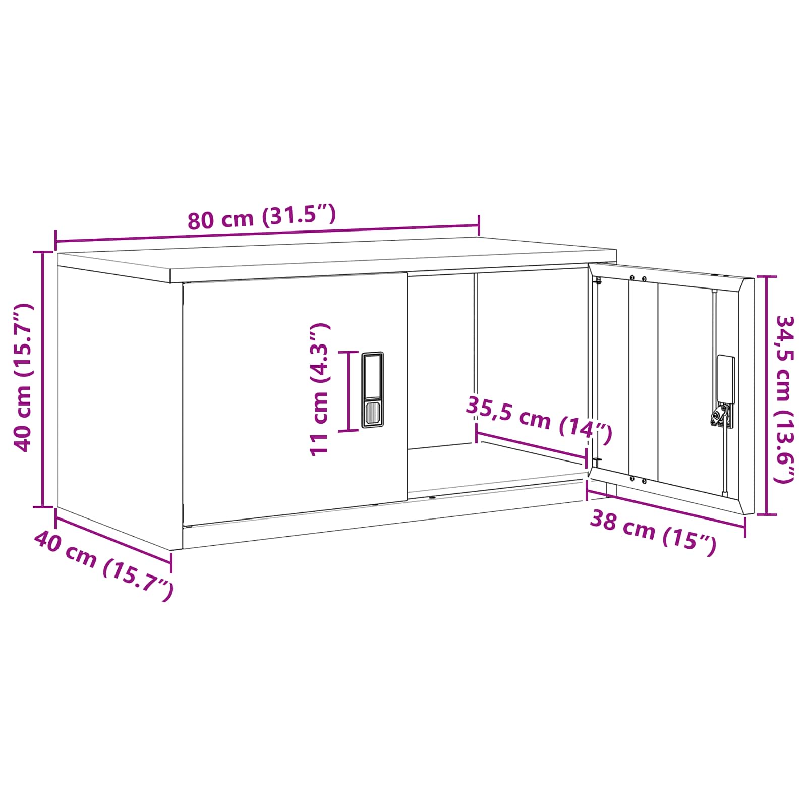 - Gesamtabmessungen: 80 x 40 x 40 cm (L x B x H)