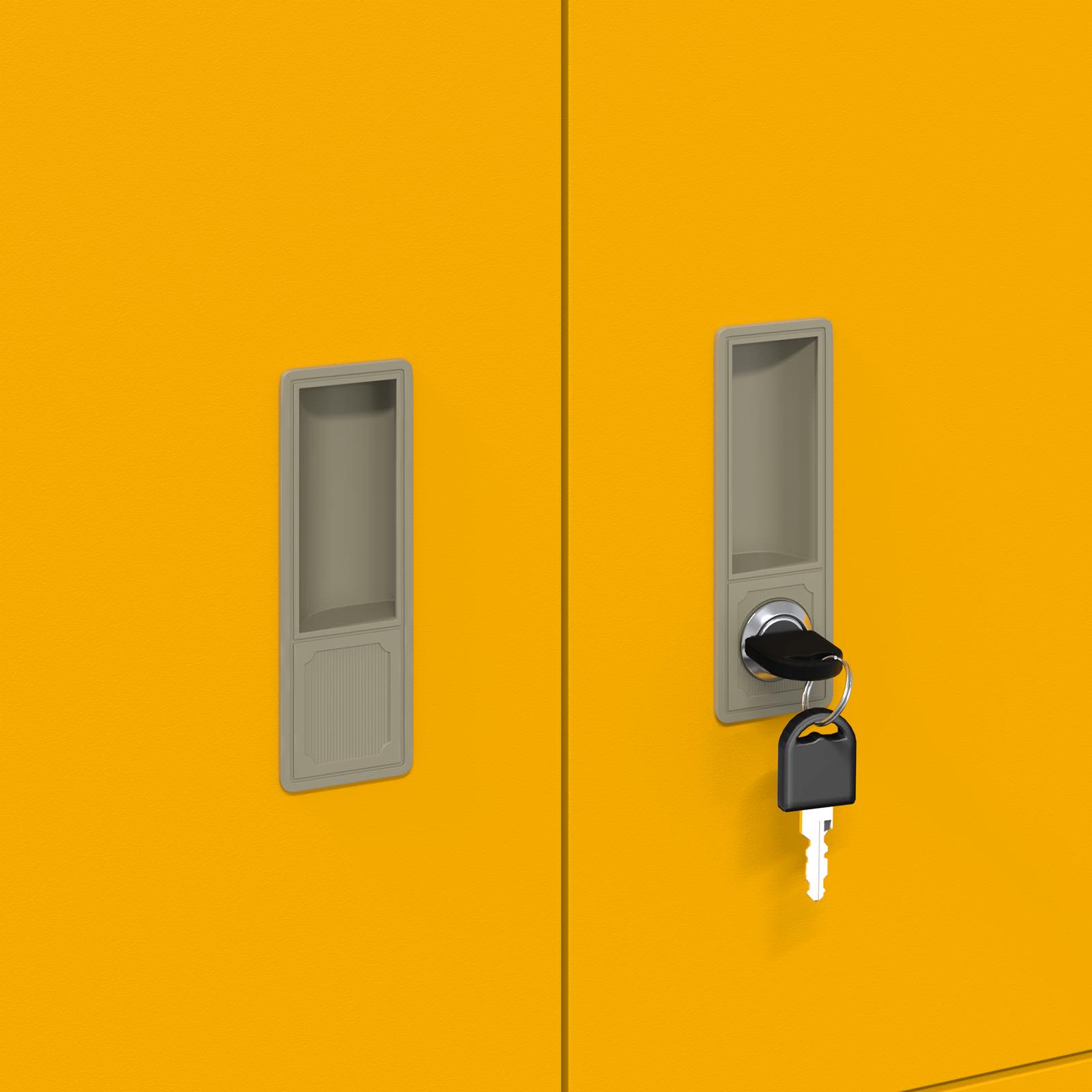 Dieser moderne Stauraumschrank bringt klare, elegante Linien und Funktionalität zusammen. Er ist die perfekte Ergänzung für jeden zeitgenössischen Raum. Aus kaltgewalztem Stahl gefertigt, bietet er nicht nur Stabilität, sondern setzt auch schicke metallische Akzente. Mit seinen durchdachten Details sorgt der abschließbare Schrank für Sicherheit deiner Wertsachen und hilft dir, Ordnung in deinem Büro oder Arbeitsbereich zu halten. Kaltgewalzter Stahl: Dieser Schrank ist aus robustem kaltgewalzten Stahl gemacht. Er bietet hohe Haltbarkeit und bleibt auch bei täglichem Gebrauch stabil. Das Material sieht nicht nur gut aus, sondern sorgt auch dafür, dass der Schrank lange hält und viele Dinge sicher aufbewahrt. Abschließbare Türen: Die Türen sind abschließbar und schützen deine wertvollen oder vertraulichen Dinge. Diese Eigenschaft ist besonders wichtig im Büro, wo Privatsphäre und Vertraulichkeit wichtig sind, oder zu Hause, wenn Kinder da sind. Industrielles & modernes Design: Die Kombination aus industriellen und modernen Designelementen verleiht deinem Raum einen coolen Touch. Die lackierte Oberfläche schützt vor Kratzern und sorgt für einen tollen Glanz, was den Schrank sowohl funktional als auch stylisch macht. Viel Stauraum: Mit viel Platz ist der Schrank ideal für alles, was du aufbewahren möchtest – seien es Büroartikel, Ordner oder persönliche Gegenstände. So wird die Organisation zum Kinderspiel! Einfache Pflege & Wartung: Der Schrank ist super pflegeleicht! Ein einfaches Abwischen mit einem feuchten Tuch reicht, um ihn sauber zu halten. Vermeide aggressive Chemikalien, damit die Oberfläche schön bleibt und der Schrank weiterhin im besten Licht dasteht.