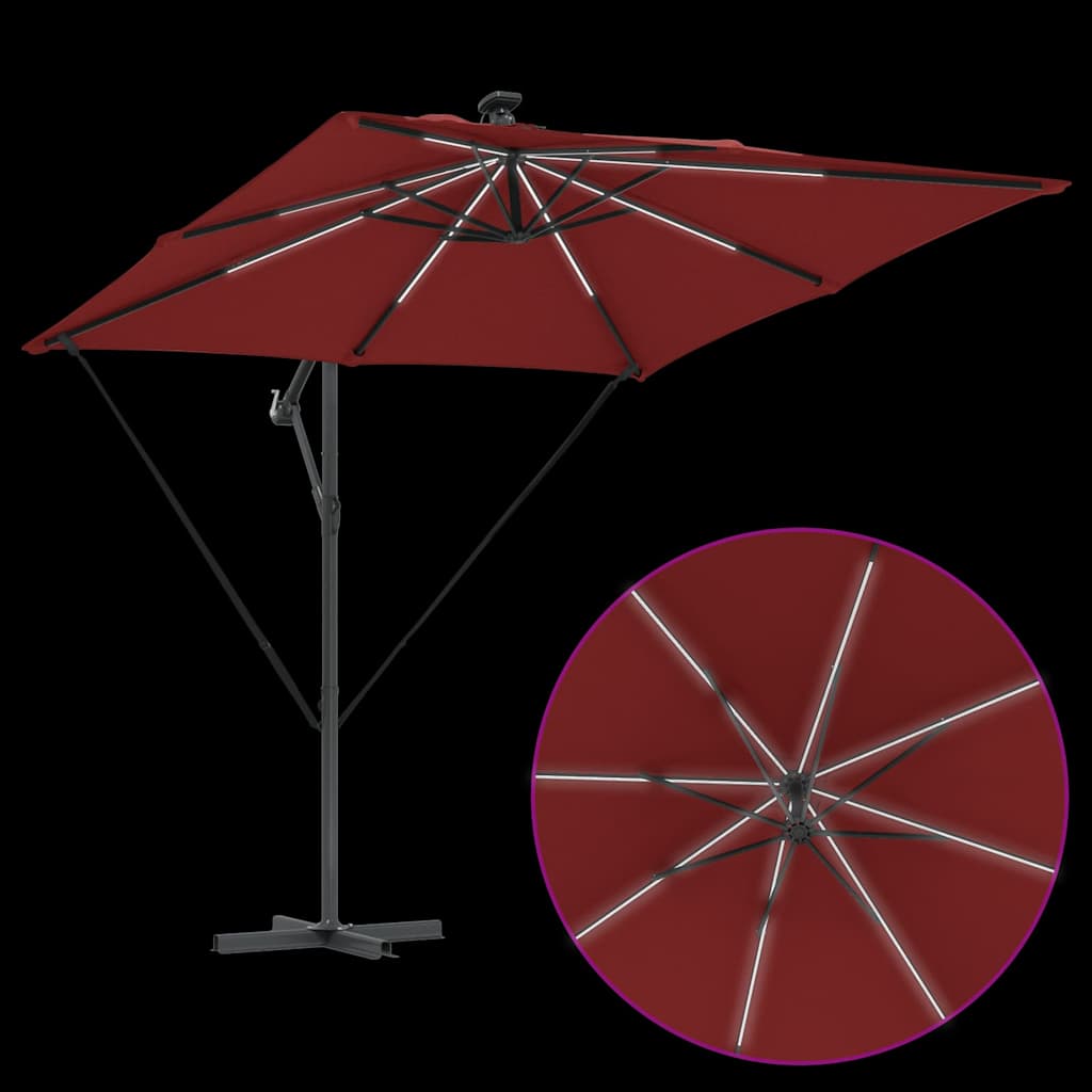 Dieser Outdoor Cantilever Sonnenschirm ist eine flexible Möglichkeit, Schatten für jeden modernen Außenbereich zu schaffen – egal ob Balkon, Garten oder Terrasse. Mit seinem schicken Design bietet er hervorragenden Sonnenschutz und bringt praktische Elemente sowie Stil in deine Sommer-Lounge. Das freischwingende Design erlaubt es dir, ihn nach Belieben zu positionieren, und sein stylisches Aussehen passt perfekt zu städtischen Umgebungen und sorgt für eine einladende Atmosphäre zum Entspannen oder Feiern mit Freunden. Material: Hergestellt aus robustem pulverbeschichtetem Stahl, ist der Sonnenschirm sowohl UV- als auch windfest. Das Polyesterdach hält den Elementen stand und schützt dich vor der Sonne, dabei sieht es auch noch schick aus. Coole Features: Mit solarbetriebenen LED-Leuchten für eine angenehme Abendstimmung und einem Handgriff zum schnellen Öffnen und Schließen, plus einer Kippfunktion, mit der du das Dach besser anpassen kannst. Er wurde für Komfort und Praktikabilität entwickelt und ist die perfekte Wahl für die Entspannung im Freien. Genialer Aufbau: Das windfeste Design sorgt dafür, dass er an windigen Tagen stabil bleibt, und die neigbare Struktur ermöglicht es dir, den Schatten ganz nach Wunsch zu justieren. Diese Flexibilität sorgt dafür, dass du immer draußen entspannen kannst – egal wo die Sonne steht, und maximiert den Einsatz von morgens bis abends. Vielseitig einsetzbar: Perfekt für jeden Außenbereich – ob Garten, Balkon oder Terrasse – bietet dieser Sonnenschirm vielseitigen Schatten. Ideal zum Chillen mit einem Buch, für eine Gartenparty oder für ein Essen unter den Sternen. Einfach zu pflegen: Für eine ansprechende Optik sprühe regelmäßig ein wasserdichtes Spray auf und benutze eine Abdeckung, wenn du ihn nicht nutzt. Regelmäßige Pflege hilft, ihn gut in Schuss zu halten und macht ihn zu einem langlebigen Element in deinem Außenbereich.