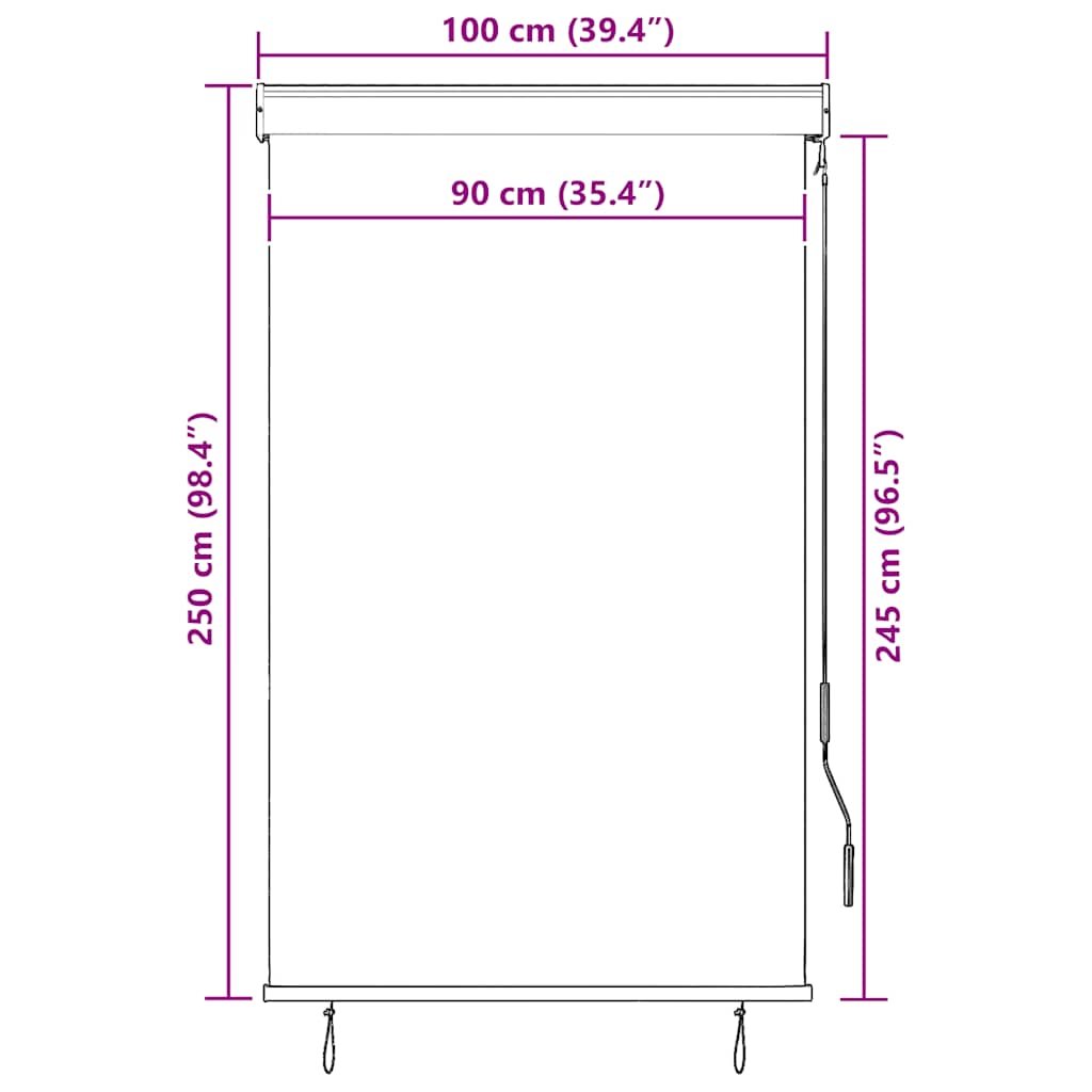 Suchen Sie nach einem Außenrollo für Ihren Balkon, Garten oder Ihre Terrasse? Dieses handbetätigte Außenrollo ist die optimale Wahl für Sie! Aus atmungsaktivem Polyestergewebe gefertigt und mit PA-Beschichtung versehen, sorgt diese Senkrechtmarkise für eine gute Luftzirkulation und kann die meisten schädlichen Strahlen blockieren. Es bietet tagsüber Privatsphäre auf der Terrasse, im Garten oder in anderen Außenbereichen. Die Aluminium-Frontstange und die Stahlkassette verhindern ein Durchhängen und Biegen. Dank des Handkurbelmechanismus lassen sich die Jalousien leicht öffnen und einfahren. Das Outdoor-Rollo ist einfach zu montieren.