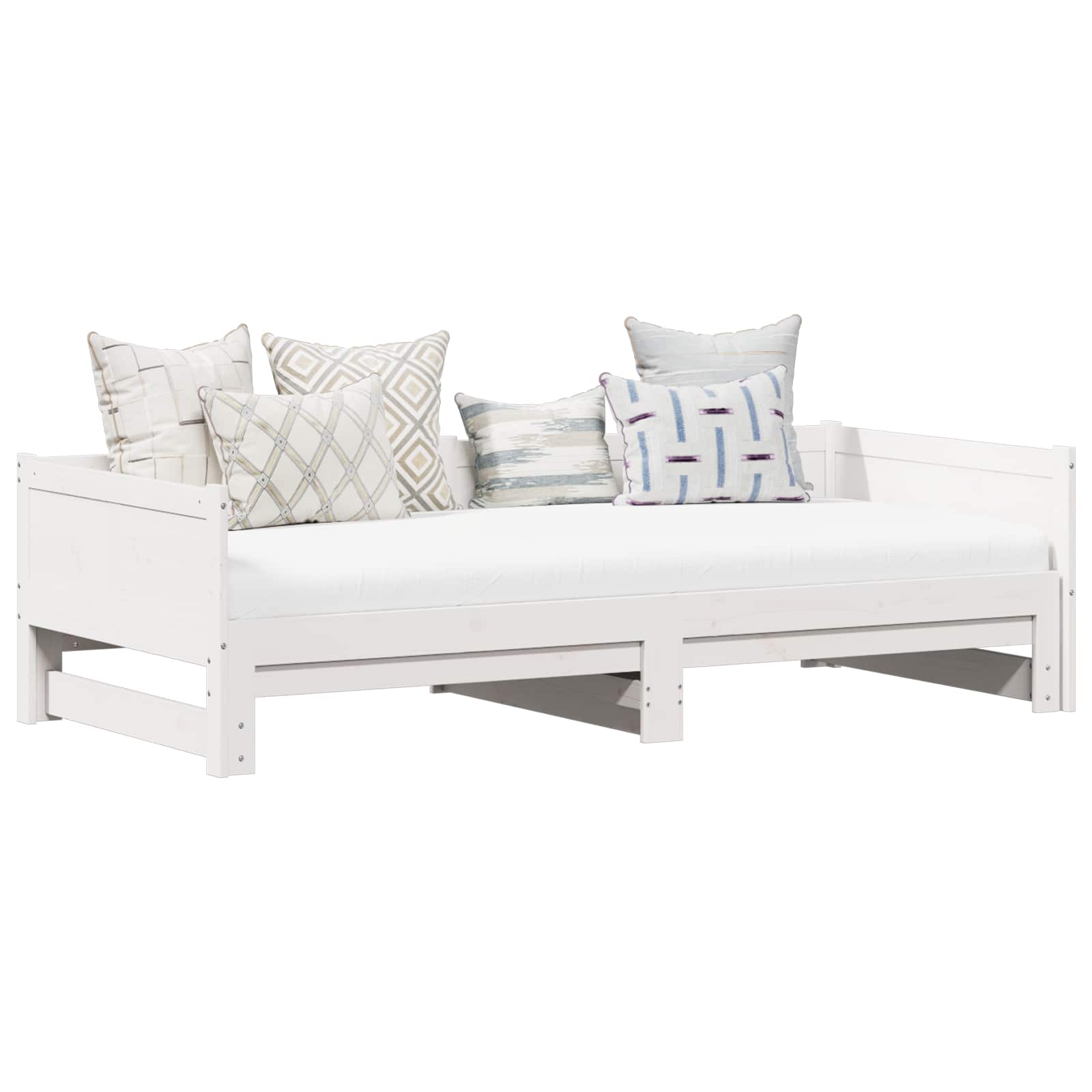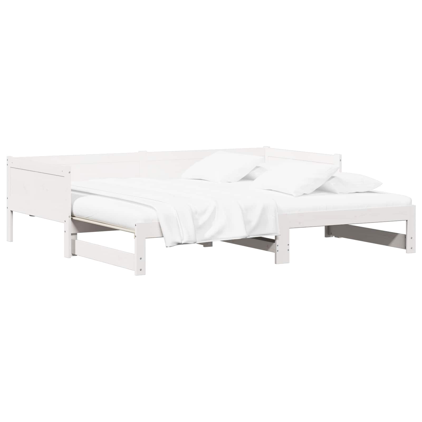 Dieses moderne Ausziehbett ist eine elegante und praktische Schlaflösung, ideal für alle, die ein minimalistisches Design in ihrem Schlafzimmer wollen. Es hat eine schlanke, rechteckige Form, die super zu verschiedenen modernen Einrichtungsstilen passt und bietet zusätzlichen Schlafplatz für Gäste und Familienmitglieder. Stabile Konstruktion: Hergestellt aus hochwertigem Kiefernholz, sorgt das Tagesbett für Langlebigkeit und Verlässlichkeit. Der robuste Rahmen unterstützt häufige Nutzung und gibt dir Sicherheit, wenn Gäste übernachten oder es als Hauptschlafplatz dient. Schlankes, modernes Design: Dieses Tagesbett begeistert mit seiner Einfachheit und verkörpert den modernen Stil durch klare Linien und wenig Schnickschnack. Es fügt sich perfekt in zeitgemäße Räume ein und bringt einen Hauch von schickem Chic in jedes Schlafzimmer. Platzersparnis: Die ausziehbare Trundle-Funktion ist großartig, um Platz zu sparen. Du kannst den Schlafbereich einfach verlängern, wenn du ihn brauchst, und wieder zurückziehen, wenn nicht – der perfekte Raumlösungs-Kniff für kleine Wohnungen. Stabile Plattform mit Lattenrost: Der Lattenrost sorgt für eine gleichmäßige Unterstützung der Matratze und fördert erholsamen Schlaf, ohne dass du dir Sorgen um Durchhängen oder Verrutschen machen musst. Diese Unterstützung verlängert die Lebensdauer der Matratze und bietet jedem Schläfer Komfort. Einfach zu pflegen: Die Pflege des Tagesbetts ist ganz unkompliziert. Ein schnelles Wischen mit einem feuchten Tuch hält alles frisch und sauber und bewahrt die schicke Optik der Möbel über die Jahre.