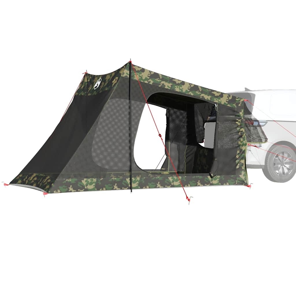 Mit diesem Zelt kannst du dein Auto schnell und einfach in ein praktisches und komfortables Campinghaus verwandeln. Das Autozelt bietet Flexibilität und zusätzlichen Platz für Campingurlaube, Festivals und Autoreisen. Rundum wasserdichtes Design: Aus Polyester mit PU-Beschichtung gefertigt, ist dieses Campingzelt wasser- und winddicht. Die versiegelten Nähte verhindern effektiv das Eindringen von Regenwasser, während die strapazierfähige Bodenplane für ein trockenes und komfortables Interieur sorgt. Einfacher Aufbau: Das Zelt verfügt über robuste Stangen und Gurte, womit es leicht am Boden verankert und mit deinem Auto verbindet werden kann, sodass du nicht nach Steinen oder anderen schweren Gegenständen für seine Aufbau suchen musst. Praktischer Zugang zum Stromkabel: Dank des E-Anschlusses kannst du ganz einfach ein Verlängerungskabel von einer externen Stromquelle an dein Zelt anschließen.Breite Anwendungen: Dieses Zelt passt zu den meisten Automodellen und ist somit ein hervorragender Begleiter für Outdoor-Abenteuer wie Camping, Wandern und andere Outdoor-Events. Leicht und tragbar: Dank des faltbaren und leichten Designs lässt sich das Zelt einfach verpacken und in der mitgelieferten Tragetasche mühelos verstauen und transportieren. Achtung:Halte alle Flammen und Wärmequellen von diesem Zeltstoff fern.