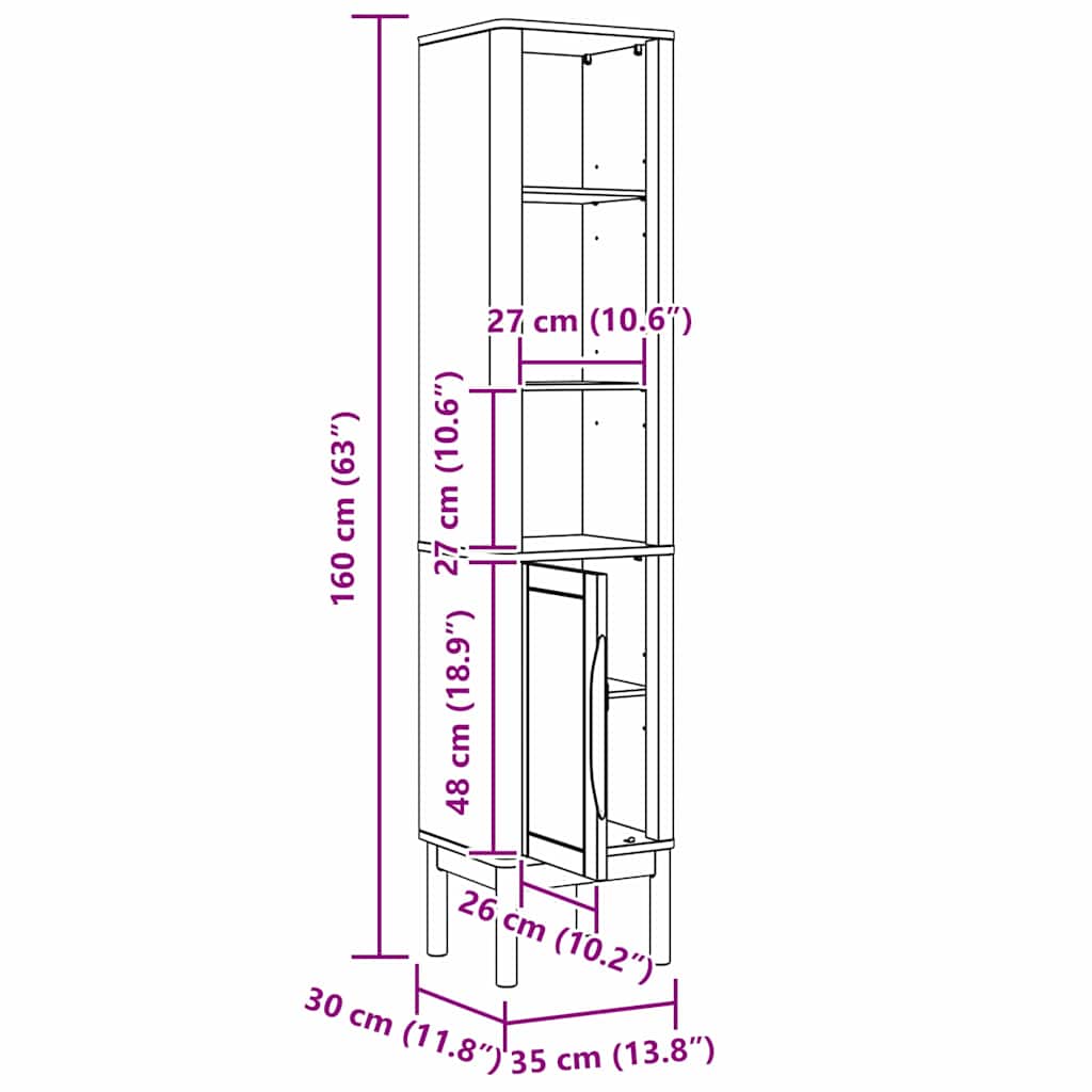 - Gesamtabmessungen: 30 x 36 x 160 cm (B x L x H)