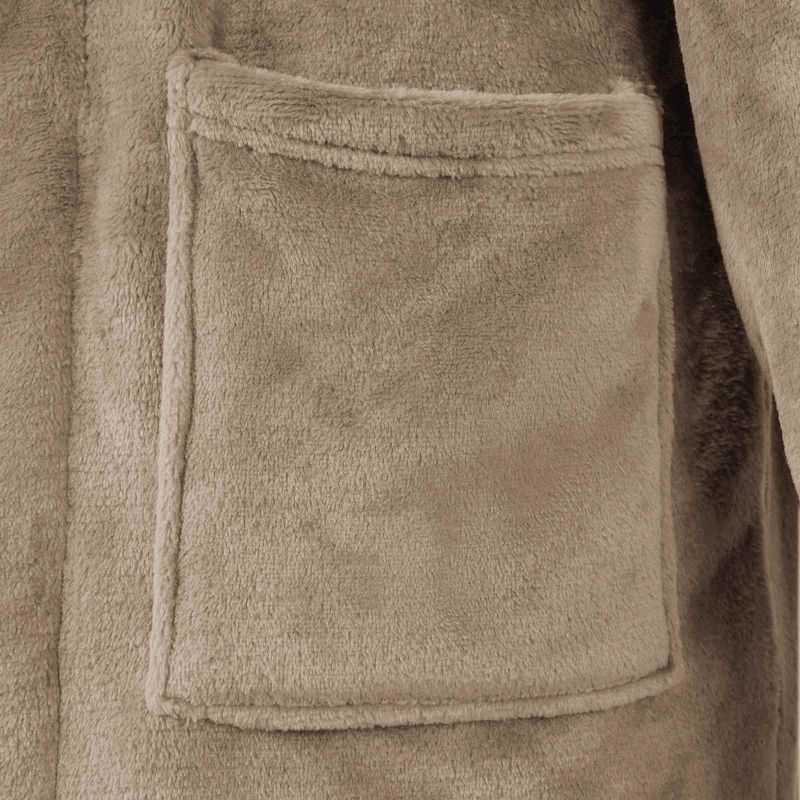 Dieser Bademantel ohne Kapuze bietet dir ultimative Wärme und Entspannung in der kalten Winterzeit. Er ist perfekt für drinnen und umhüllt dich mit seinem flauschigen, weichen Material, was ihn zum idealen Begleiter für faule Morgende oder gemütliche Abende macht. Das schlichte, aber schicke Design fügt sich nahtlos in jedes Schlafzimmer oder Wohnzimmer ein, verbessert Stil und Komfort. Erlebe die perfekte Kombination aus Luxus und Alltagstauglichkeit mit diesem unverzichtbaren Teil der Lounge-Bekleidung. Weiches Flanellmaterial Der Bademantel ist aus hochwertigem Flanell, das für seine flauschige Textur bekannt ist. Dieses Material bietet Wärme und einen sanften Touch auf der Haut, perfekt für den Winter drinnen. Es sorgt für ein kuscheliges Erlebnis in deinem Schlafzimmer oder Wohnzimmer. Praktische Aufbewahrungstasche Dieser Bademantel hat eine praktische Tasche, die mehr Komfort bietet. Sie ist ideal für kleine Dinge wie dein Handy oder zur Wärme deiner Hände. Die Tasche ist stylish und stört das Gesamtbild nicht. Leicht und tragbar Mit diesem leichten Bademantel kannst du dich frei bewegen. Egal ob auf der Couch oder im ganzen Haus, sein Design hält dich bequem und beweglich. Zudem passt er super in deine Wochenendtasche. Saisonale Winterkleidung Speziell für die kalte Jahreszeit gemacht, ist dieser Bademantel ideal und kombiniert Wärme mit Stil. Seine sanfte Farbe und das minimalistische Design passen in jeden Wohnstil und halten dich zugleich chic und gemütlich. Pflege & Wartung Um das tolle Gefühl zu behalten, ist der Bademantel pflegeleicht. Maschinenwaschbar, beachte die Pflegeanleitung und vermeide Bleichmittel, um die Weichheit und Farbe zu bewahren. Die Langlebigkeit sorgt dafür, dass er viele Saisons ein treuer Begleiter bleibt.