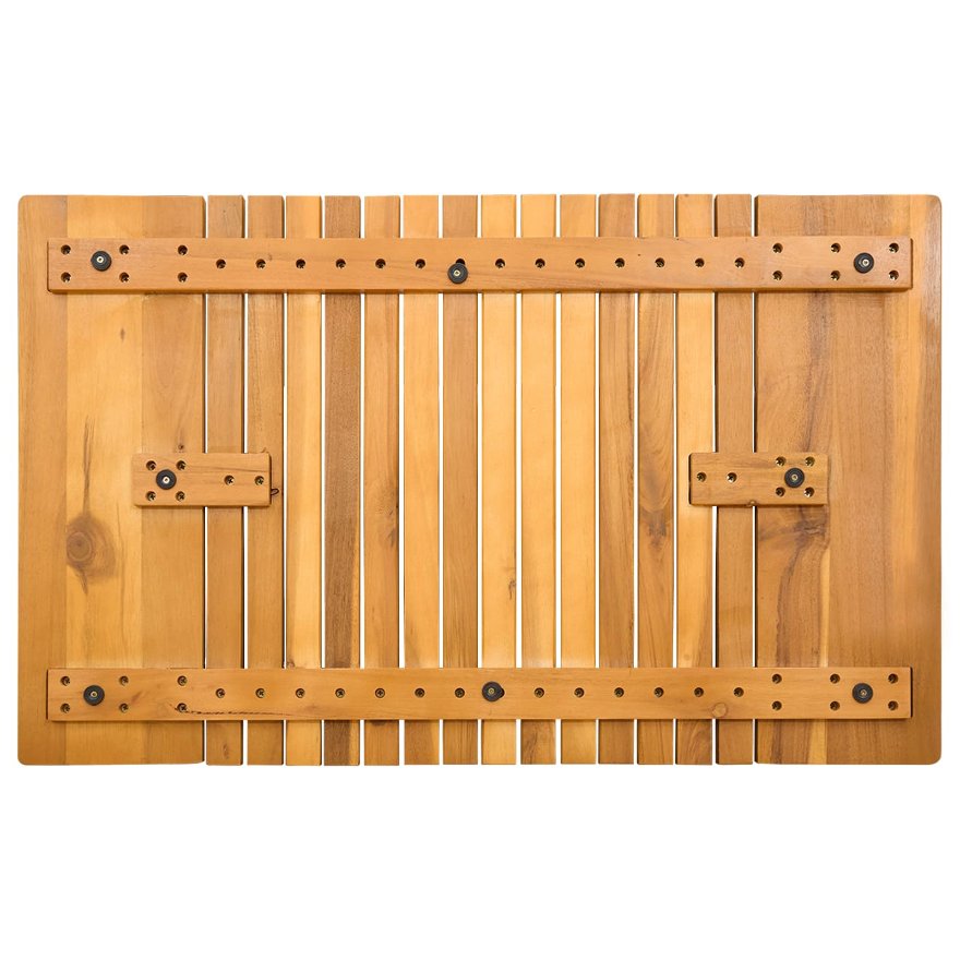 Diese schicke Holzbadematte verwandelt dein Bad in eine minimalistische Oase und bringt sowohl Stil als auch Funktion mit. Ihre glatte Oberfläche und das schlichte Design fügen sich harmonisch in jede Einrichtung ein und sorgen dafür, dass du sicher und komfortabel stehst. Natürliche Holzbauweise: Die Matte ist komplett aus Holz und bringt eine warme, natürliche Note in dein Zuhause. Das geölte Finish hebt die Holzfarbtöne hervor und schützt gegen Feuchtigkeit – perfekt für moderne Bäder oder Balkone. Umfassende Belüftung: Durch das belüftete Design wird die Luftzirkulation gefördert, was Schimmelbildung reduziert und dafür sorgt, dass die Matte nach der Benutzung schnell trocknet. So bleibt dein Bad frisch und schön. Benutzerfreundliche Wartung: Die glatte Oberfläche der Matte ist ganz leicht zu reinigen. Einfach mit einem feuchten Tuch abwischen; so bleibt sie sauber und frisch. Achte darauf, scharfe Chemikalien und kräftiges Reiben zu vermeiden. Rutschfeste Sicherheit: Die rutschfeste Unterseite sorgt für Stabilität auf nassen Flächen und gibt dir das gute Gefühl, dass du sicher stehst. Ideal für Familien mit Kindern oder älteren Menschen, die in nassen Umgebungen sicher sein wollen. Vielseitige Nutzung innen & außen: Die Matte ist für drinnen und draußen geeignet und bietet dir viele Gestaltungsmöglichkeiten. Perfekt für Bäder, Terrassen und Balkone, die Stil und Funktionalität bringen.