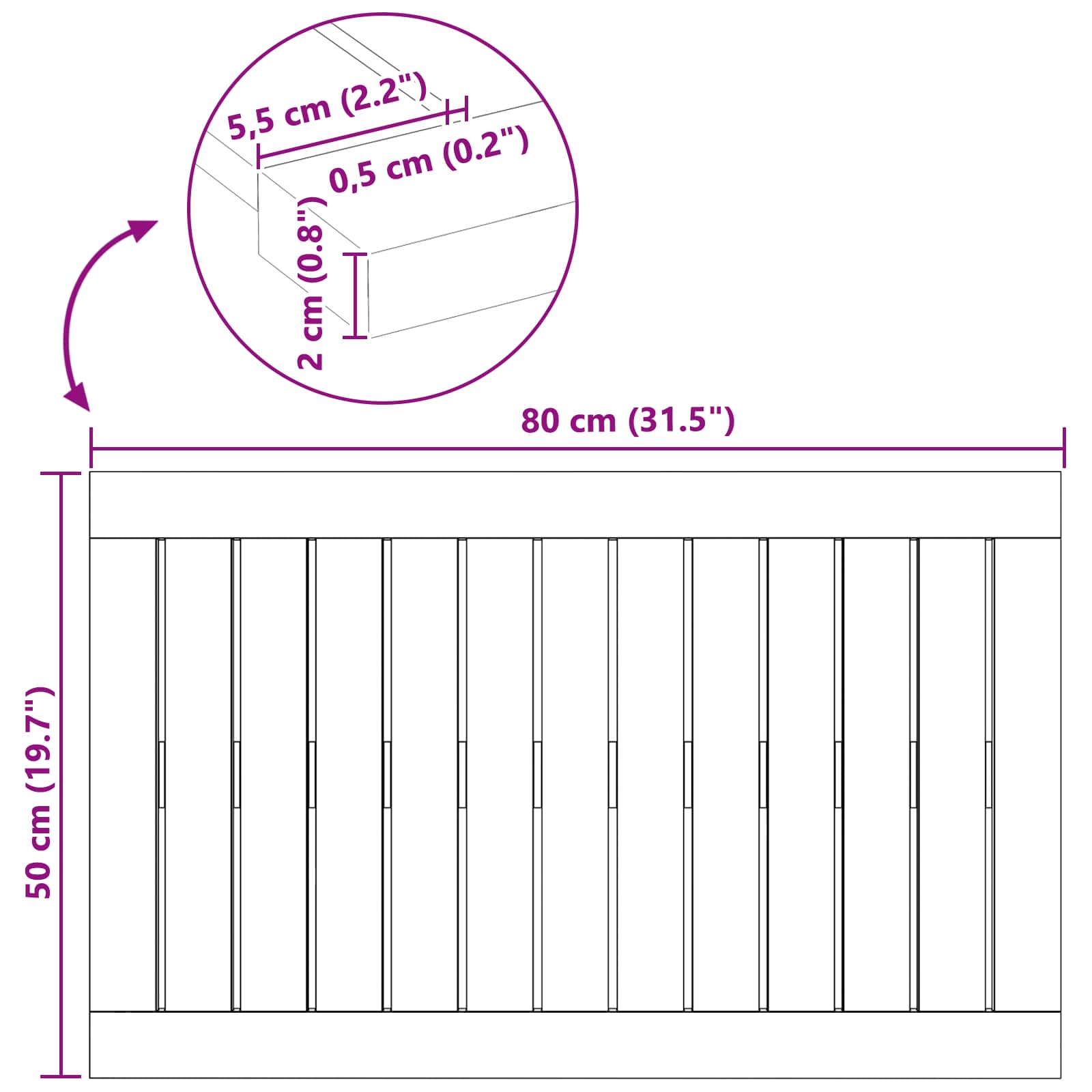 - Gesamtabmessungen: 80 x 50 cm (L x B)