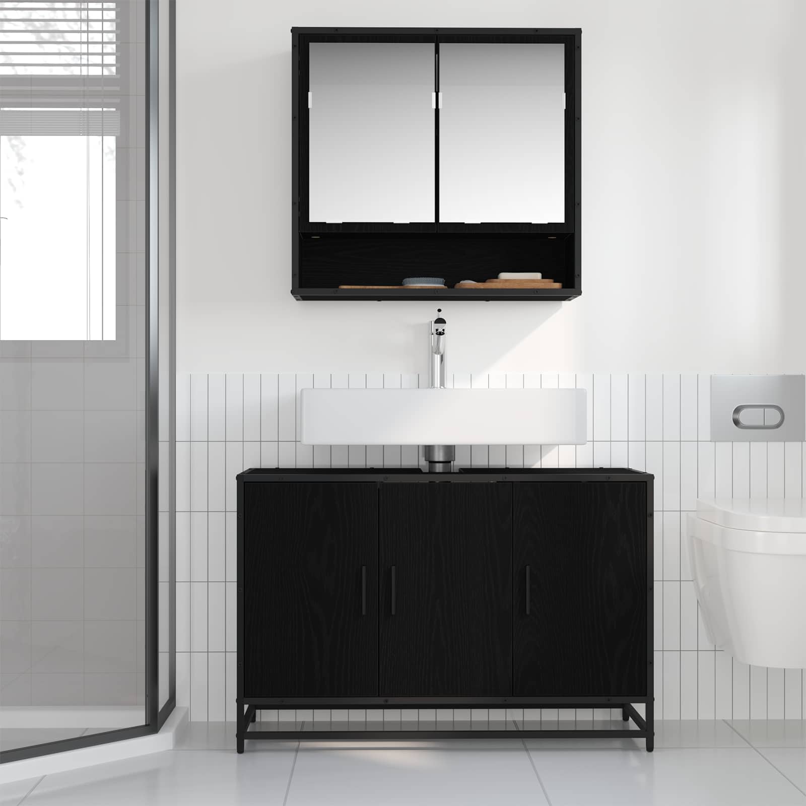 Check diesen modernen Badschrank aus! Er hat eine schlanke rechteckige Form, die eine super Mischung aus Stil und Funktionalität ist. Ideal für moderne Badezimmer, kombiniert er klare Linien mit einem frischen Twist. Stell dir vor, dein Badezimmer sieht total entspannend und stylisch aus, dank seiner beeindruckenden Maße von 90 x 33 x 60 cm. Es geht um praktischen Stauraum, der gleichzeitig auch gut aussieht. Struktur aus Holzwerkstoff Der Schrank ist aus Holzwerkstoff mit einer strukturierten matten Oberfläche gefertigt, die stabil und schick ist. Er ist für die Nutzung in feuchten Badezimmern gedacht und behält dabei seinen stylishen Look. Praktische Stahlkomponenten Dieser Schrank hat Stahlbeine, einen schwarzen Stahlrahmen und Stangengriffe – das gibt ihm einen coolen industriellen Touch und macht ihn zusammen mit seiner Funktionalität besonders. Der Stahl sorgt dafür, dass er stabil bleibt und zu verschiedenen Badezimmerstilen passt. Viel Stauraum Mit den Türen mit Scharnieren und Regalen bietet dieser Schrank flexiblen Stauraum. Er ist dafür gemacht, deine Badezimmerutensilien ordentlich zu halten und alles griffbereit zu haben. Funktionales Design Mit seiner einfachen rechteckigen Form eignet er sich für verschiedene Räume. Die Türen mit Scharnieren erleichtern den Zugriff auf deine Sachen, während das Äußere top aussieht. Pflege und Wartung Um diesen Schrank frisch zu halten, ist ein Kinderspiel. Einfach mit einem trockenen Tuch abwischen, um die schicke matte Oberfläche zu bewahren. Achte darauf, die Regale nicht zu überladen, damit alles in Schuss bleibt.