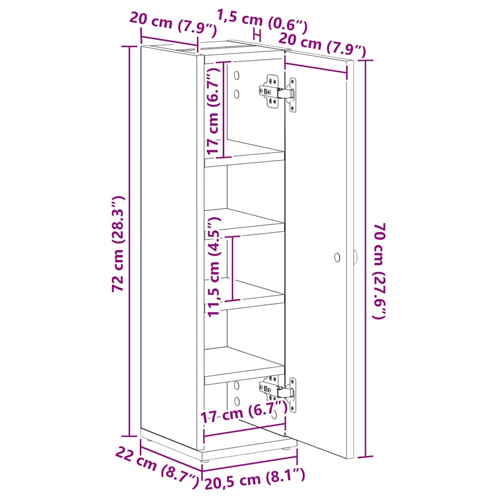 - Abmessungen: 20,5 x 22 x 72 cm (B x T x H)