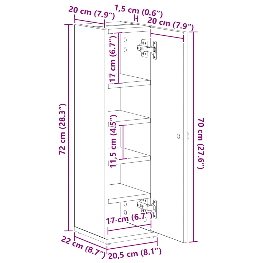 - Abmessungen: 20,5 x 22 x 72 cm (B x T x H)