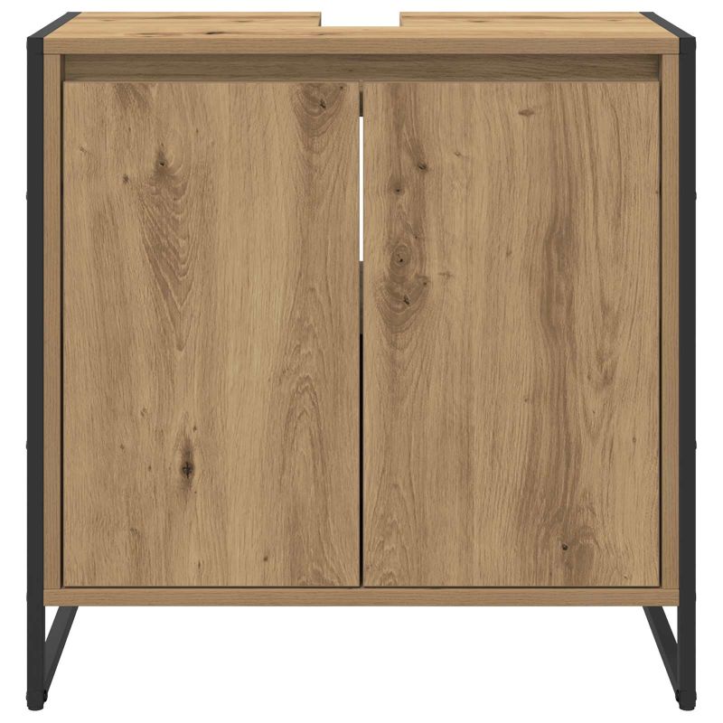 Dieser industrielle Badezimmer-Schrank aus Holzwerkstoff ist vielseitig einsetzbar und bietet eine klasse Kombination aus Optik und Handlung. Mit seinem schlanken, rechteckigen Design passt er perfekt in moderne Bäder und bietet dir viel Platz, um Handtücher, Toilettenartikel und andere Notwendigkeiten ordentlich zu verstauen. Struktur aus Holzwerkstoff Der Schrank ist aus hochwertigem Holzwerkstoff gemacht, was ihn stabil und robust macht. Die widerstandsfähige Oberfläche ist perfekt für das feuchte Badezimmerklima. So passt er gut in dein Bad und bietet gleichzeitig einen stilvollen Akzent. Stahlbeine Der Schrank hat stabile Stahlbeine, die für eine sichere Basis sorgen. Sie erhöhen nicht nur die Haltbarkeit, sondern verleihen dem Design auch einen coolen Industrie-Look. Diese Beine verlängern die Lebensdauer des Produkts und sehen dabei gut aus. Rechteckiges Design Das praktische rechteckige Design des Schranks nutzt den Platz optimal und ist somit top für kleinere Badezimmer. Er passt super in jeden Raum und bietet viel Stauraum für Badezimmerutensilien – so bleibt alles ordentlich. Montagevorgang Der Schrank kann mit einem Schraubendreher von zwei Personen montiert werden, um Stabilität und Haltbarkeit zu gewährleisten. Eine leicht verständliche Anleitung führt dich Schritt für Schritt durch den Aufbau und sorgt für eine problemlose Montage. Nur für den Innenbereich Dieser Schrank ist für den Innenbereich gedacht, um eine konsistente und zuverlässige Stauraumlösung in deinem Badezimmer zu bieten. Er wurde speziell für häusliche Anwendungen entwickelt und ist ein unverzichtbares Möbelstück für dein Bad.